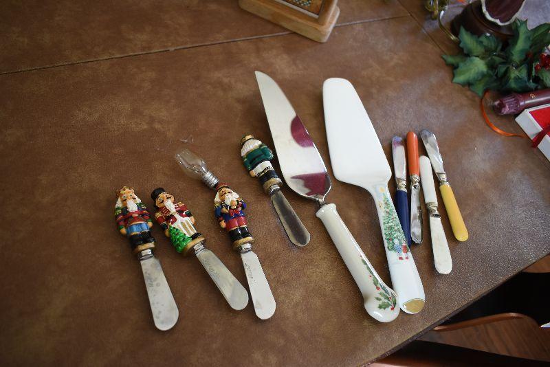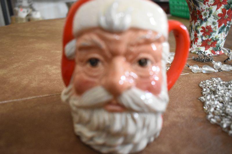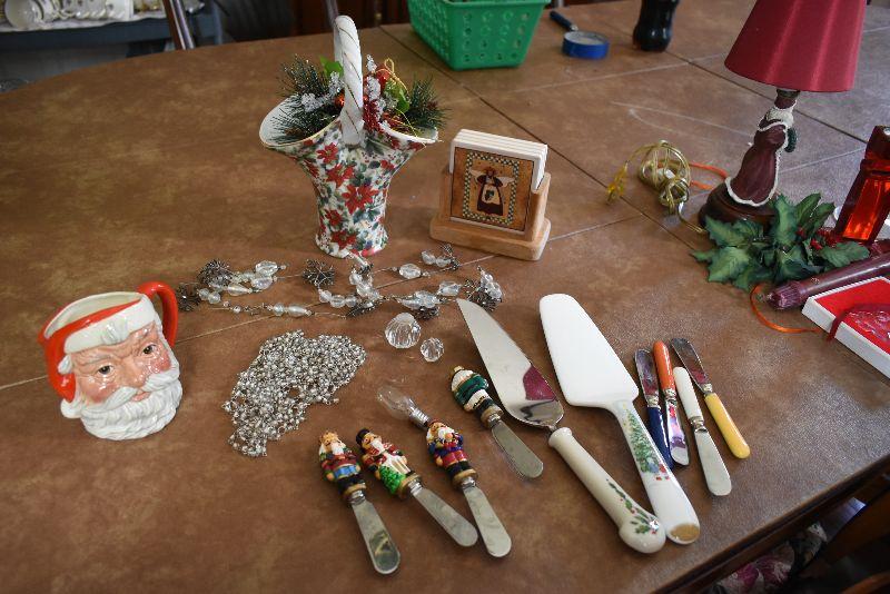 Christmas cheese knives and cake servers, beads and crystals, coasters, Royal Doulton Santa mug, and more.