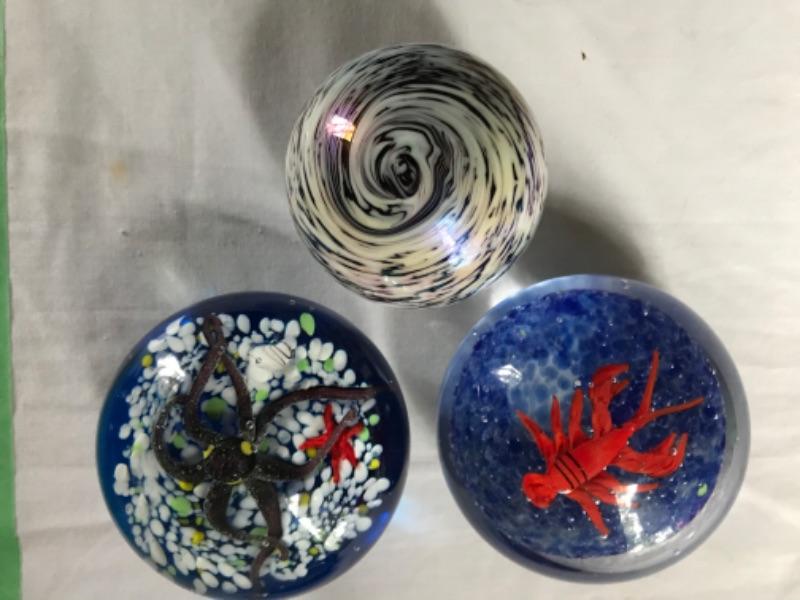 Lobster, Octopus and Iridescent swirl. No signatures or markings