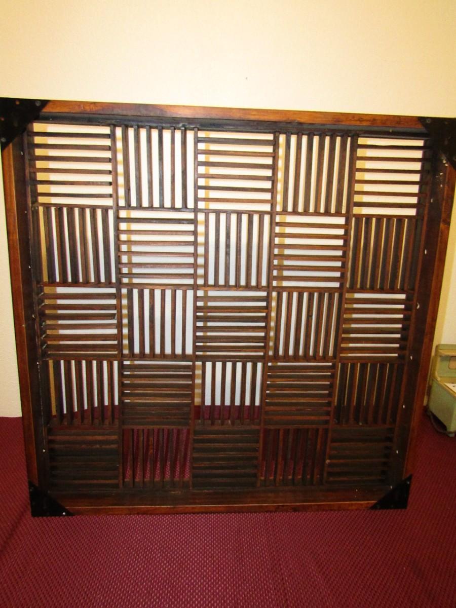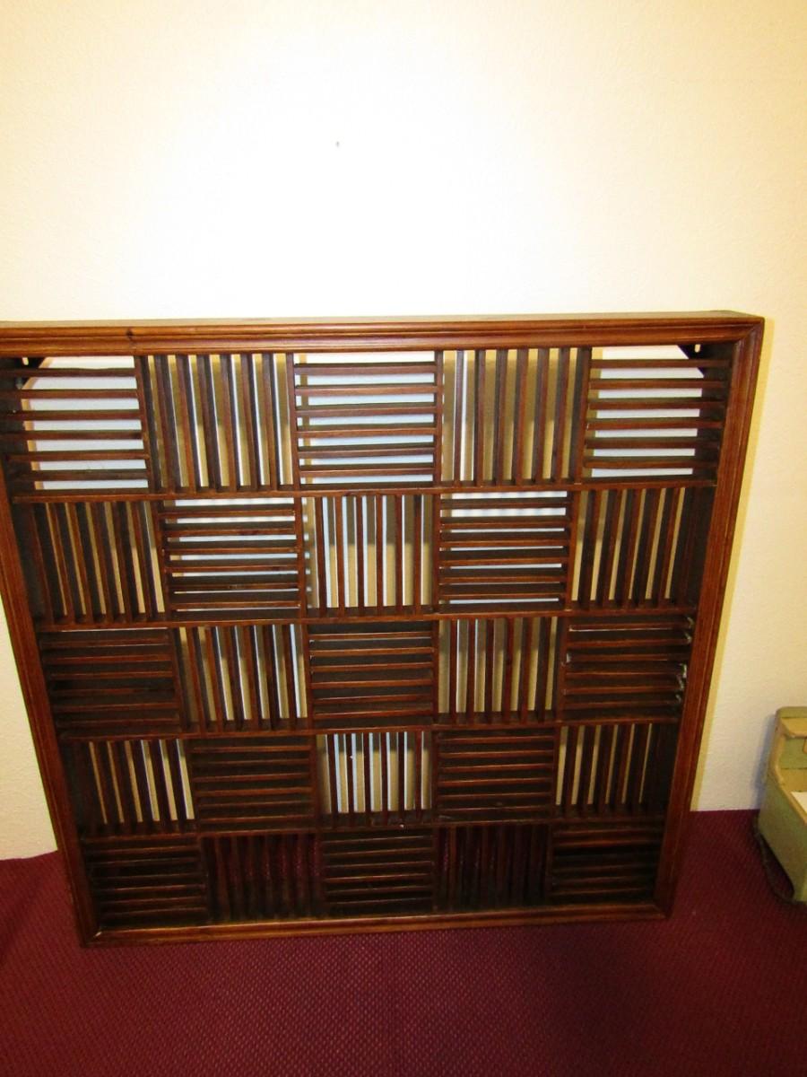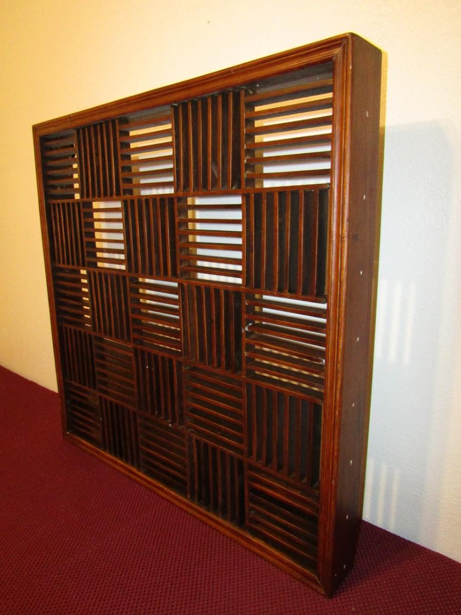 WOODEN CD RACK WITH WALL MOUNTS, APPROX 29" SQUARE