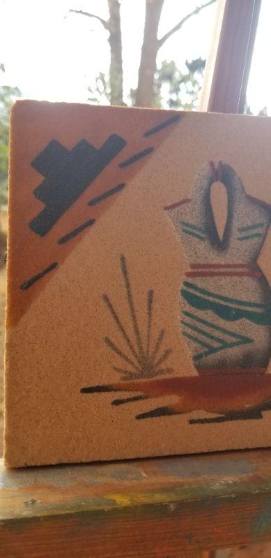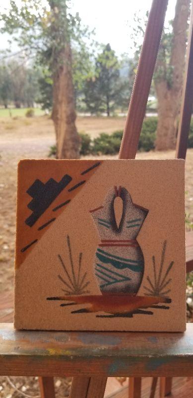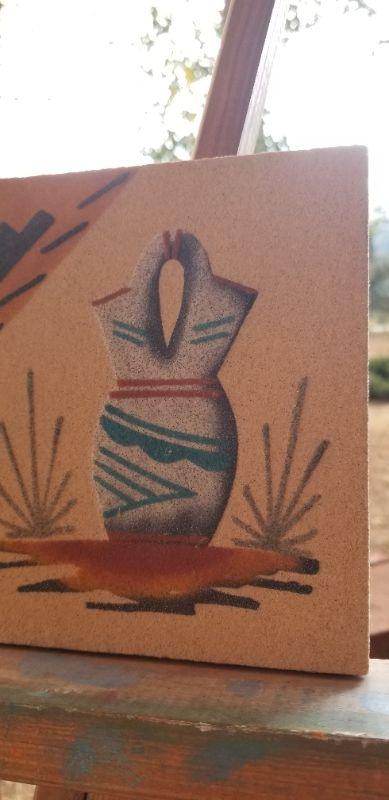Lot 2-481: Vintage Navajo Sand Painting VASE 6" x 6"