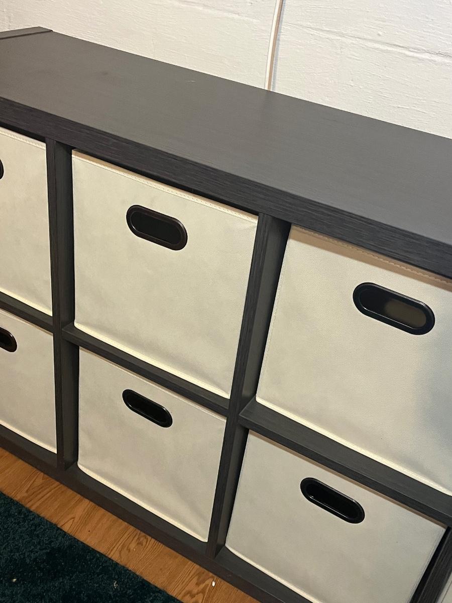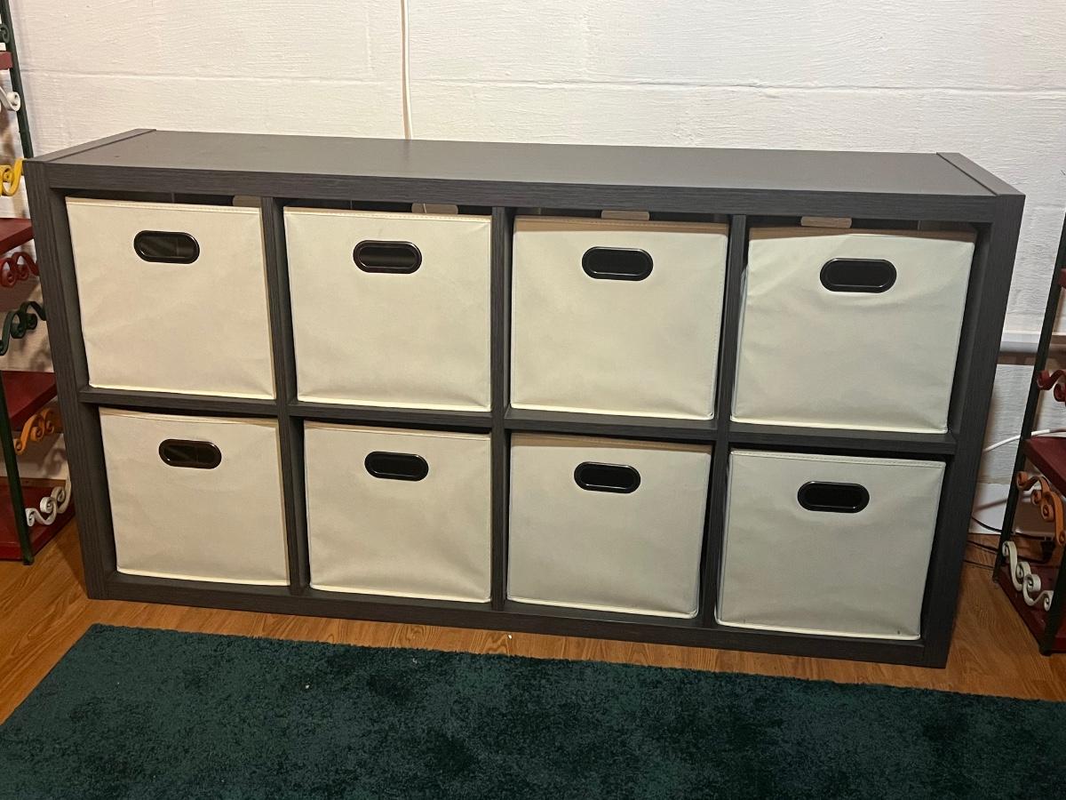 LOT 257B: Eight-Cube Storage Shelf / TV Stand / Entertainment Center w/ Storage Bins