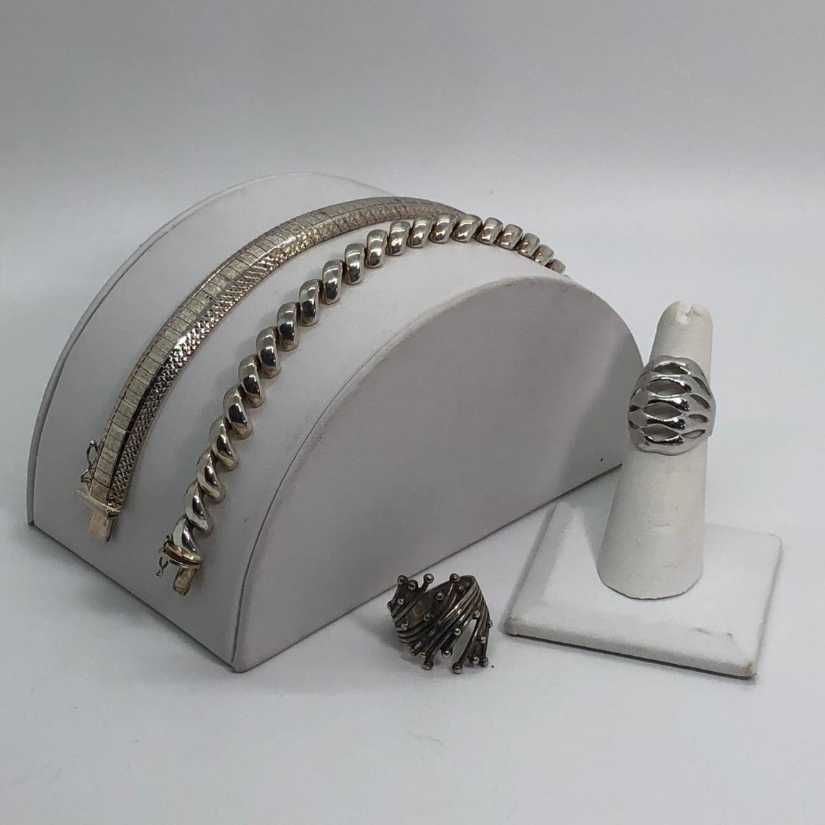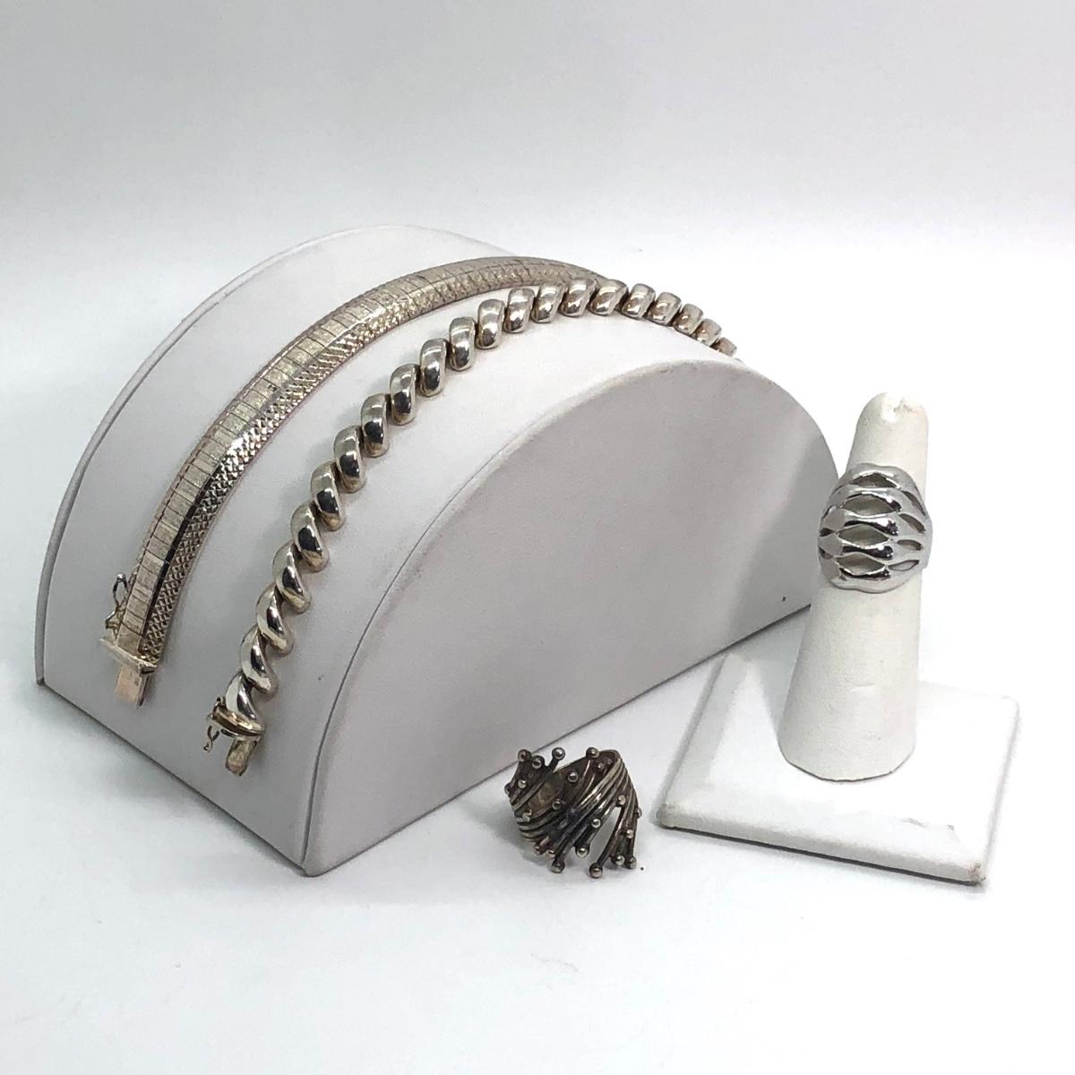 LOT 248M: Chunky Vintage Sterling: 925 Ring, Beau Sterling Ring & Two 925 Italy Bracelets (7")