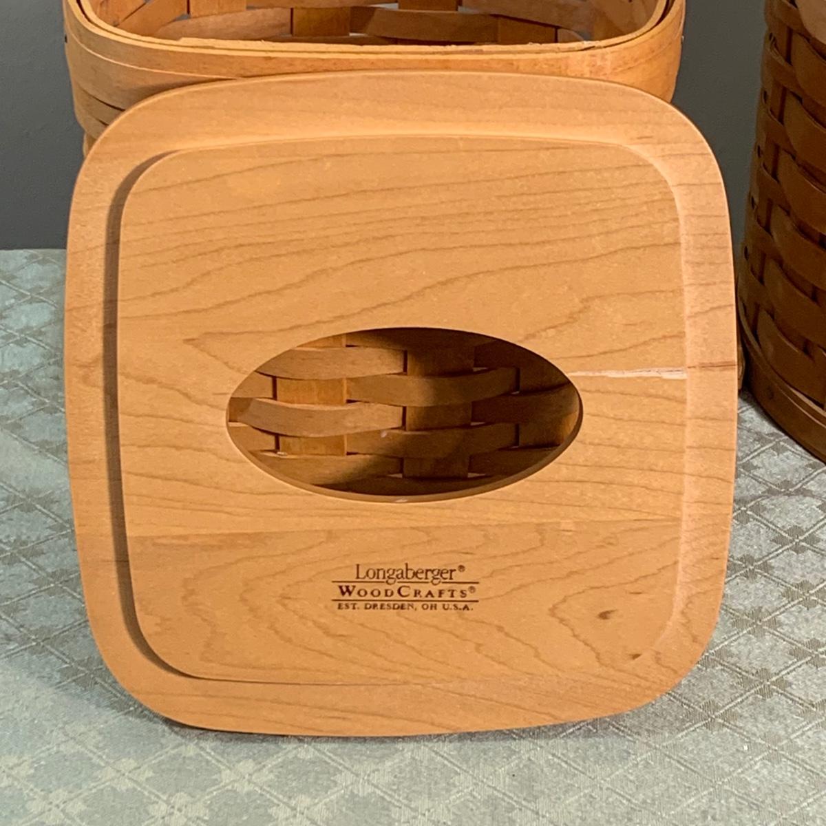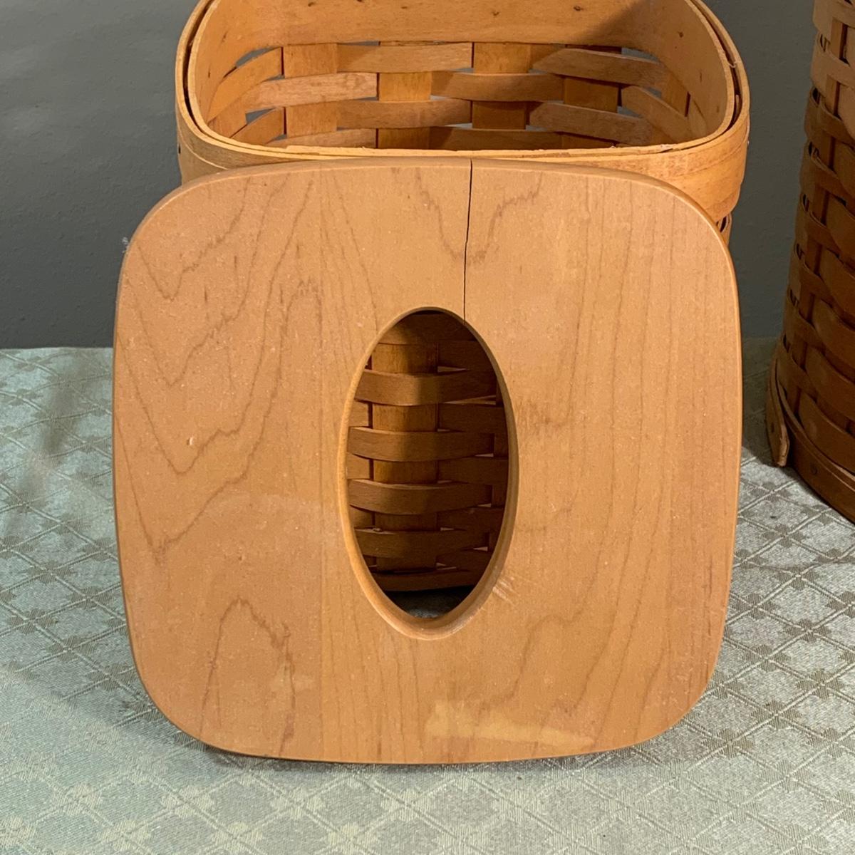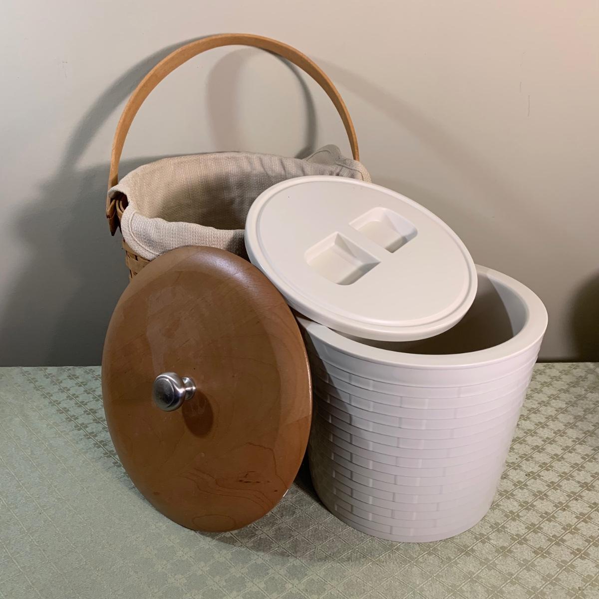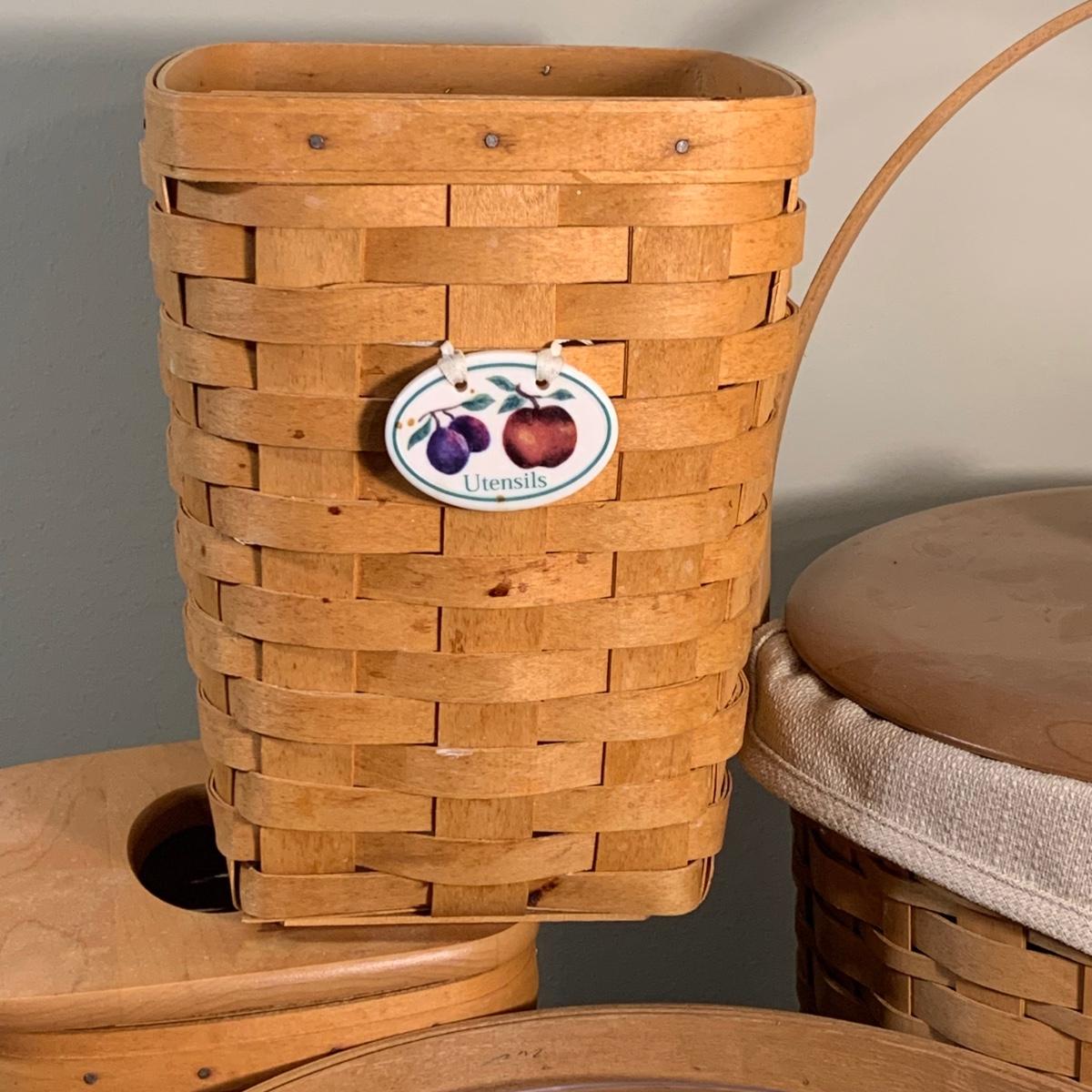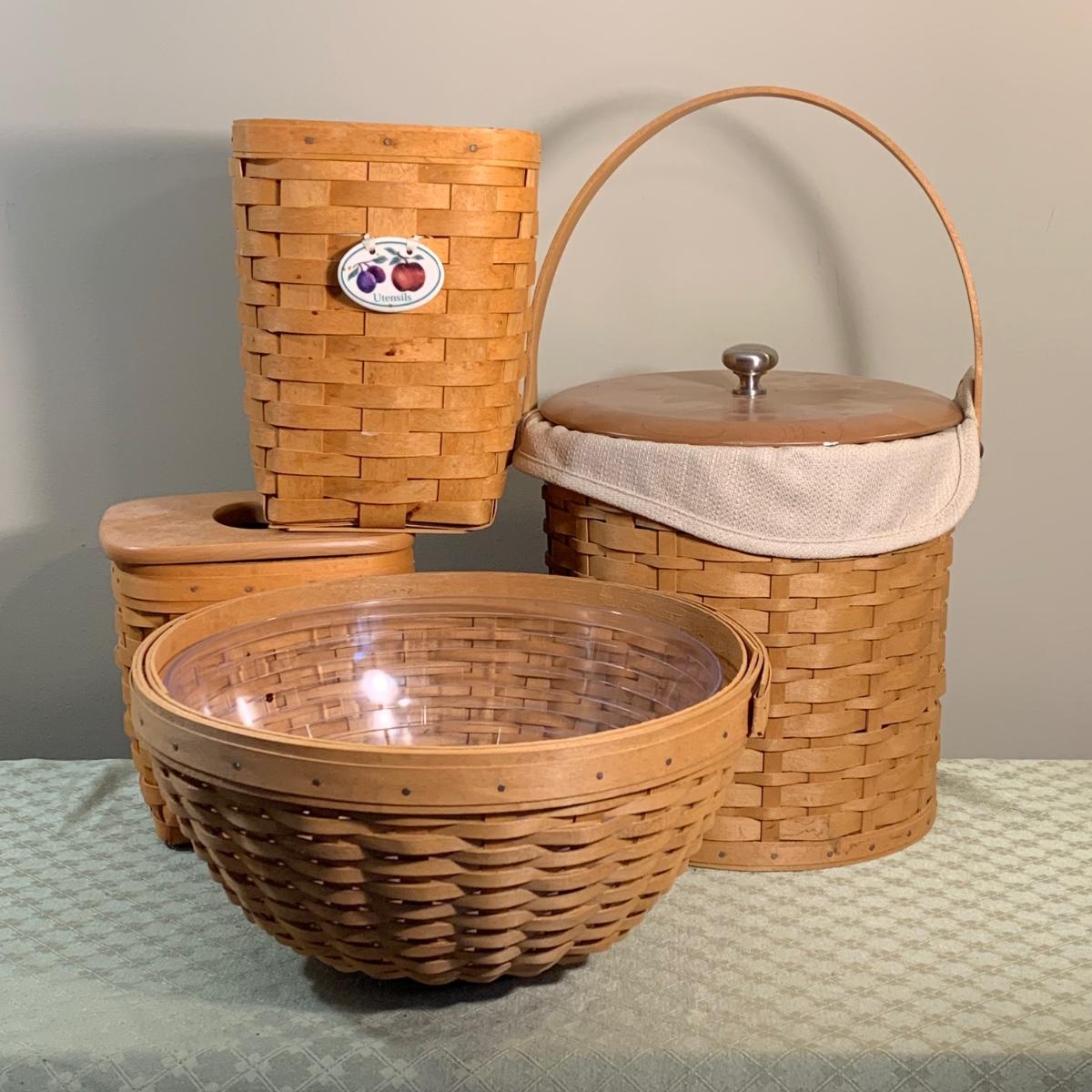 Lot 248R: Longaberger Baskets: Ice Bucket, Utensil Holder, Tissue Holder & Fruit Bowl