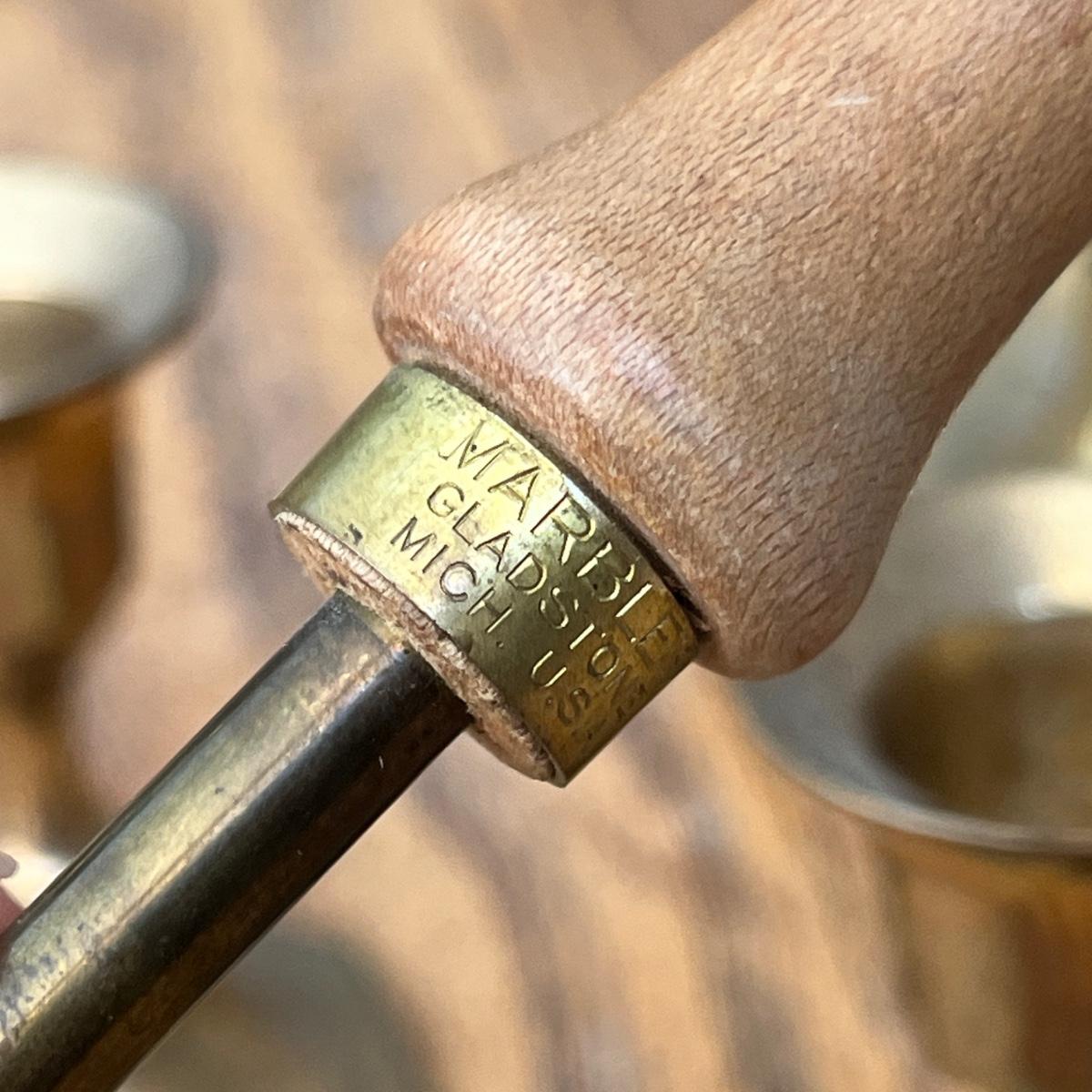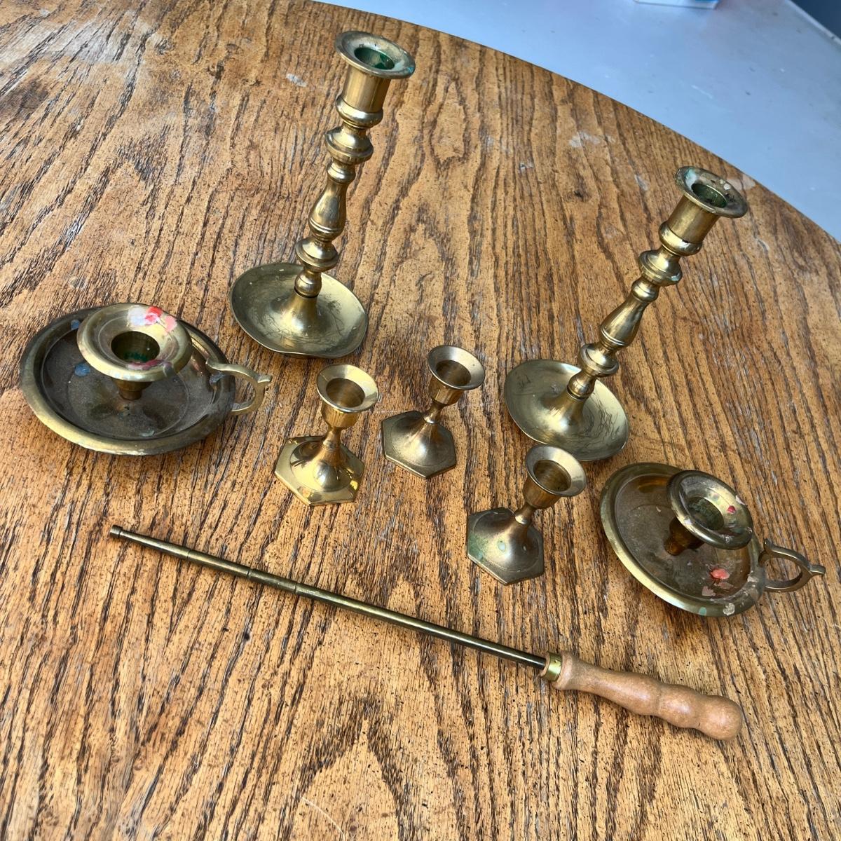 Lot 249 Brass candlesticks and Mable's brass loading rod for revolver