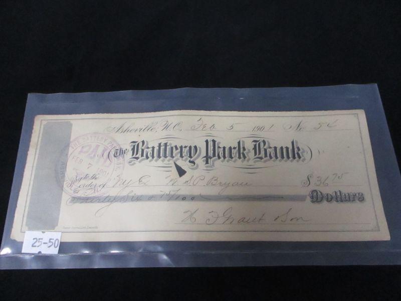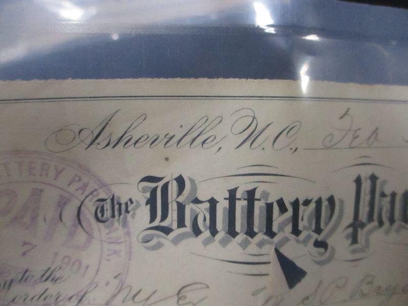 Lot 249 - 1901 Battery Park Bank Checks - Asheville NC