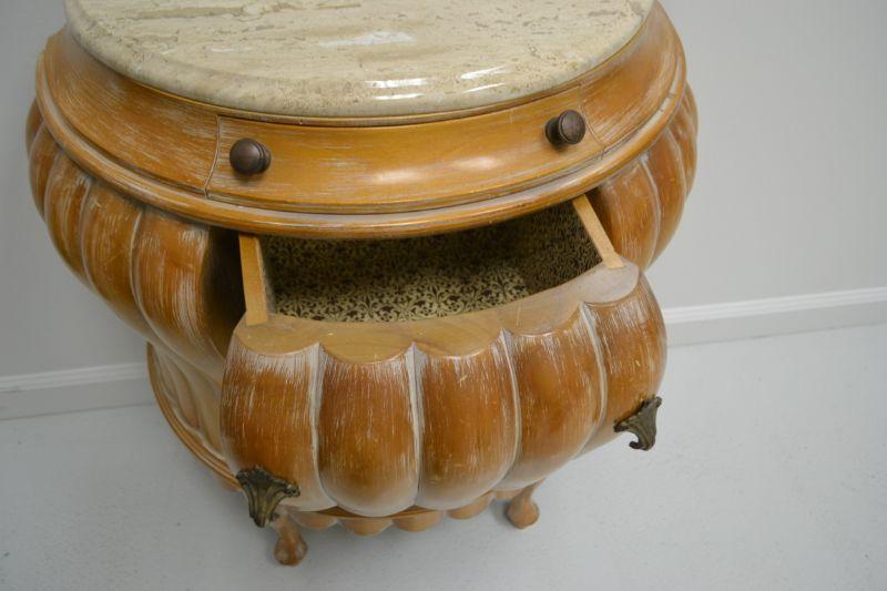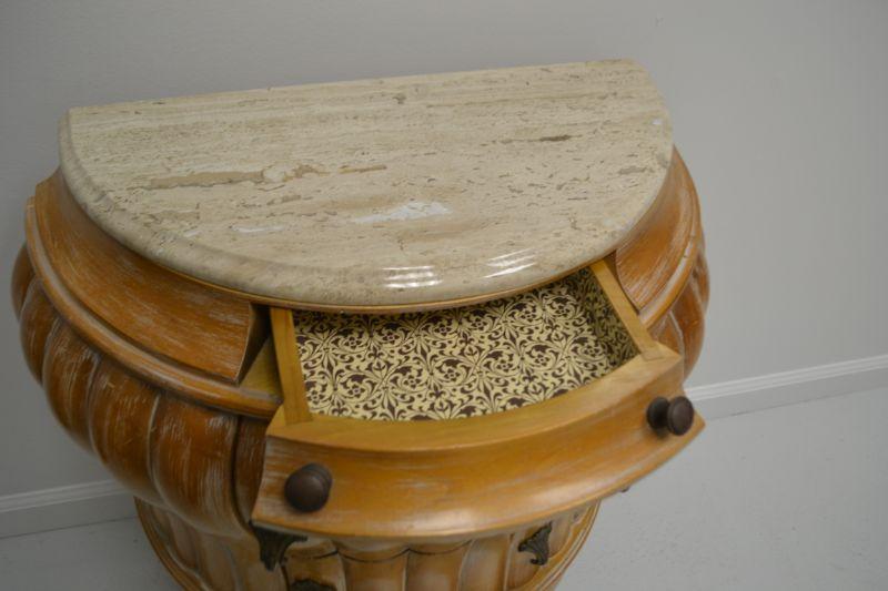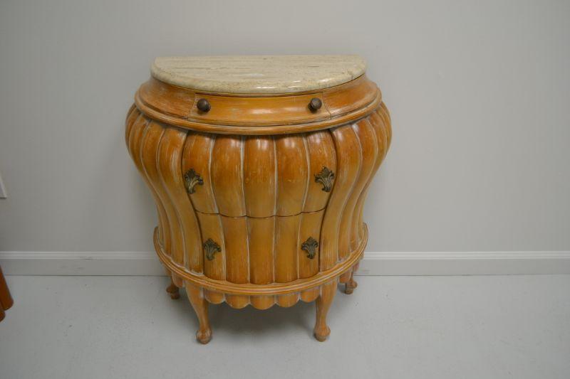 WOOD NIGHT STAND WITH MARBLE TOP 26" WIDE, 14 " DEEP, 28" TALL