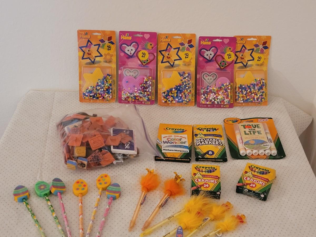 Lot 249: Children's Activities (Crayons & Markers are used except True to Life package), Rubber Stamps, Pens & Pencils