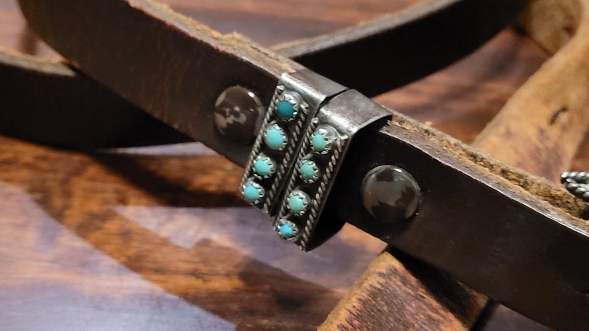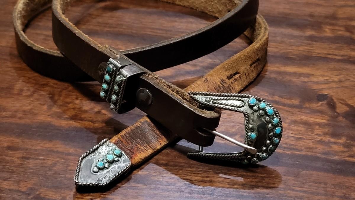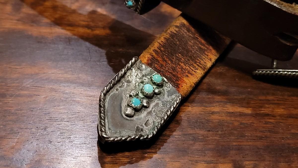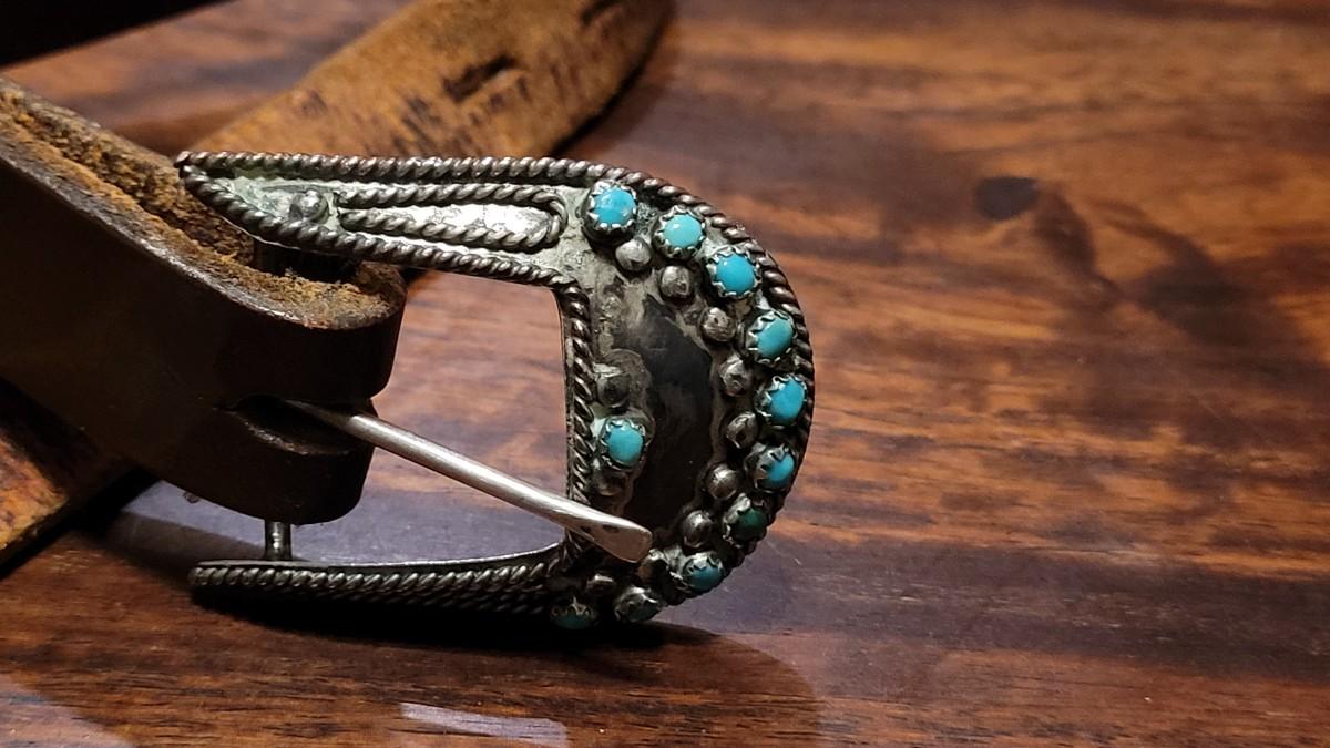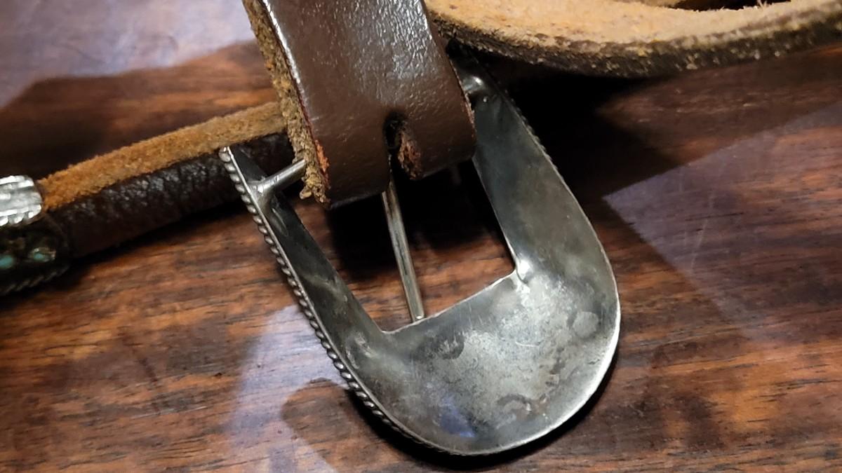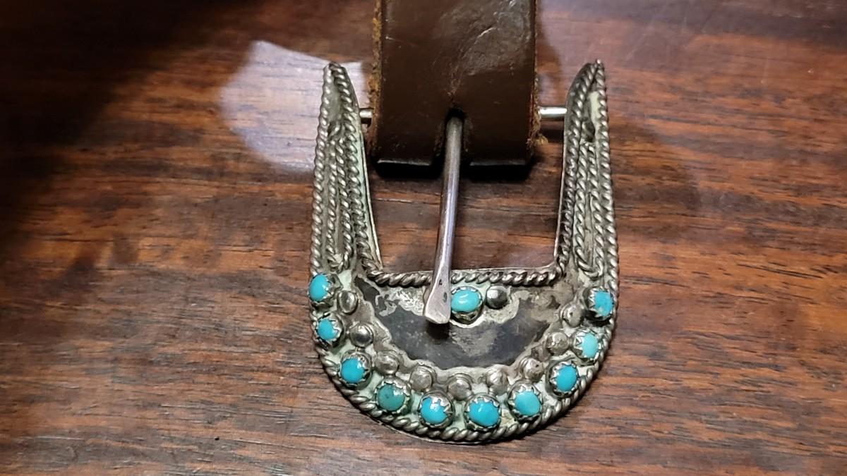 Lot 249: Vintage Turquois Belt Buckle and Brown Leather Belt