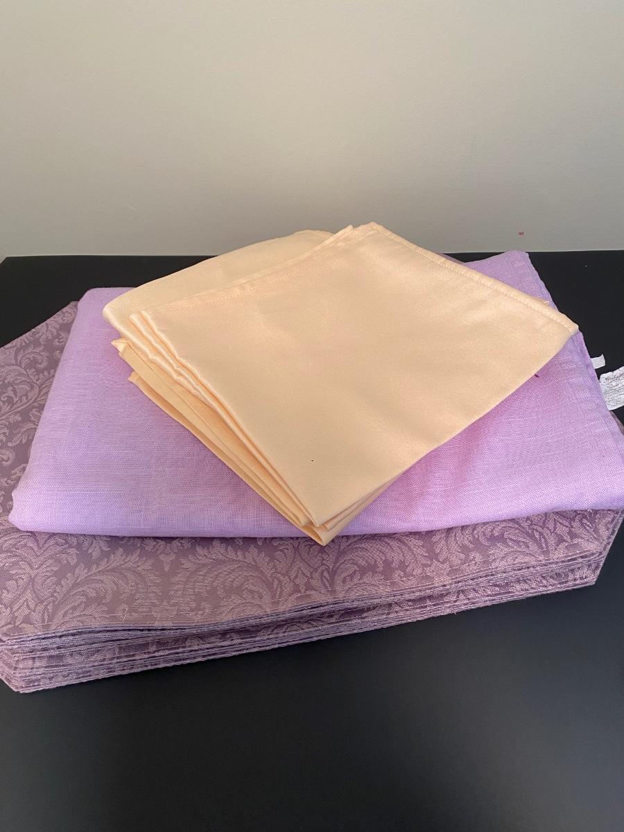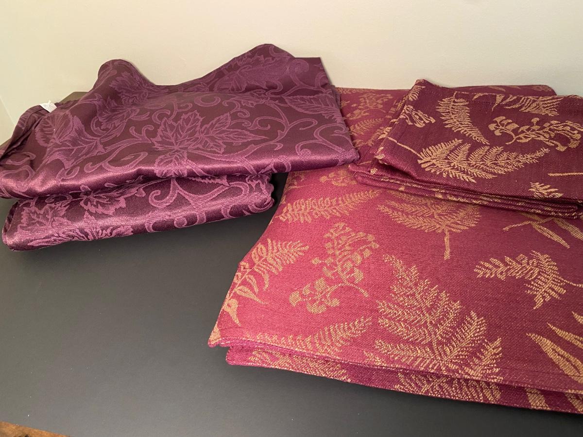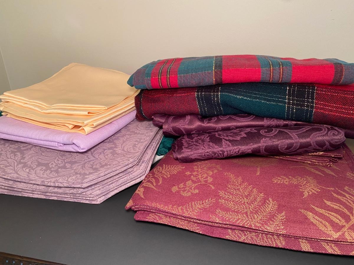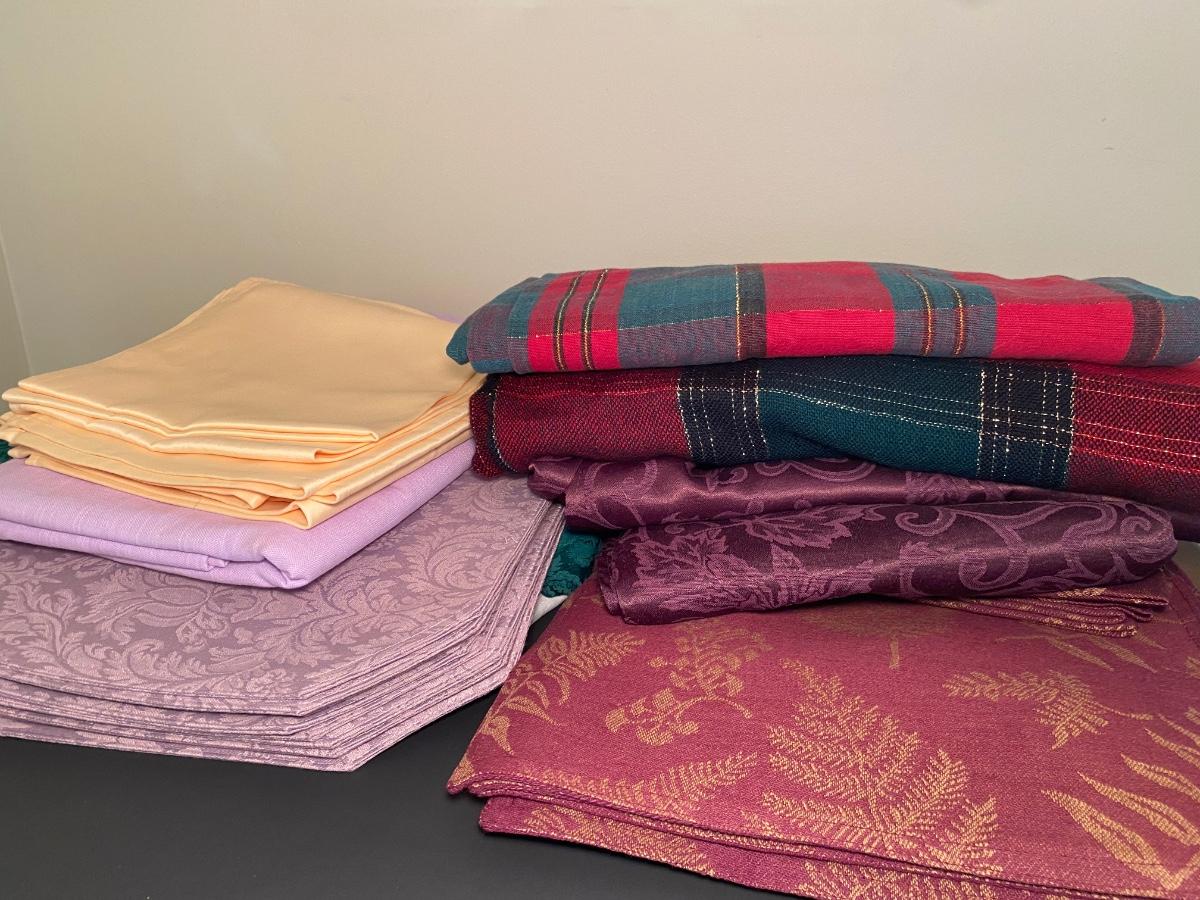 Mixed lot of tablecloths and place mats. Lenox tablecloth new in package.