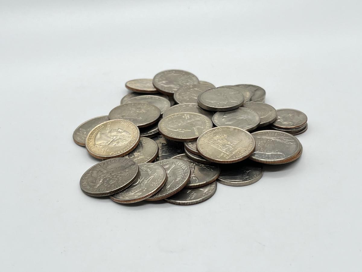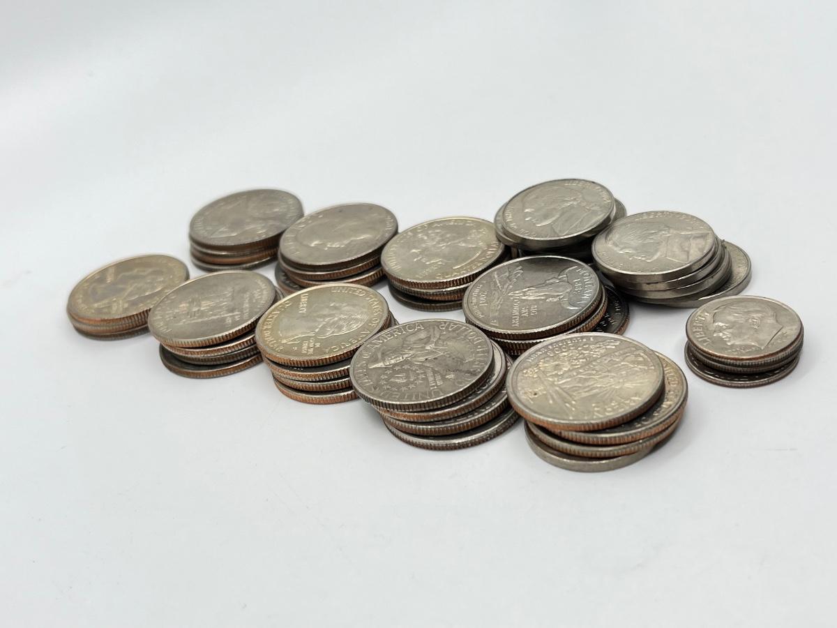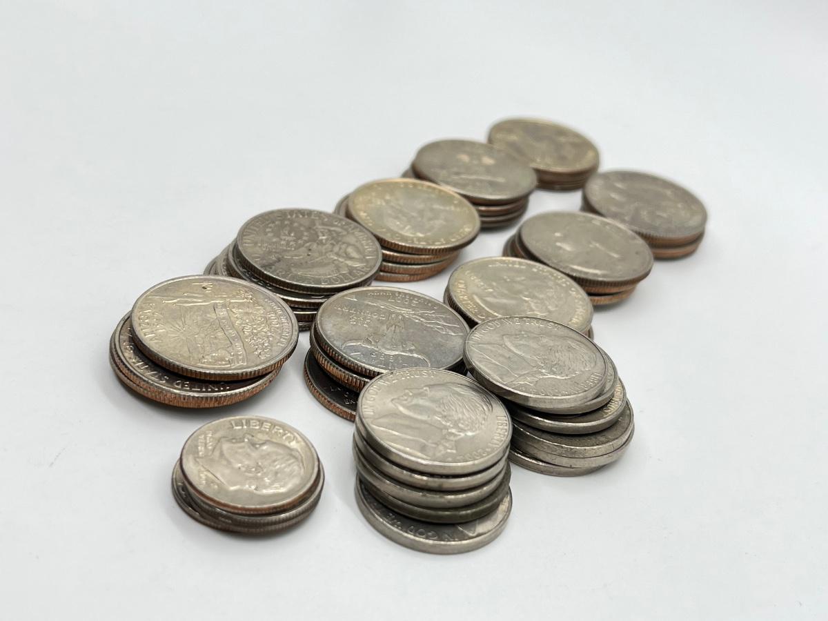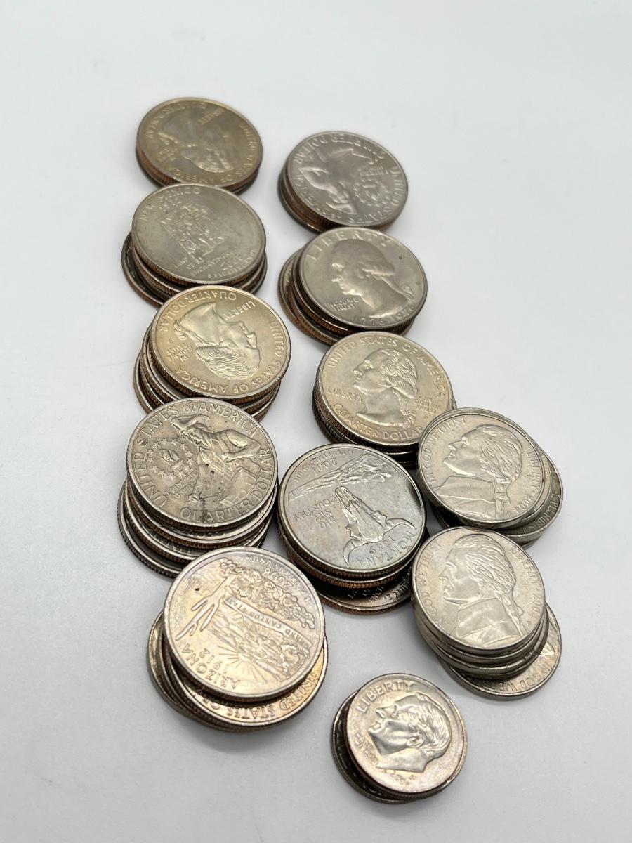LOT 249:Quarters including State and Bicentennials, Nickels & Dimes, Plus Empty Statehood Quarter Book