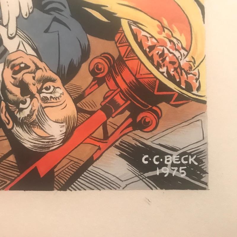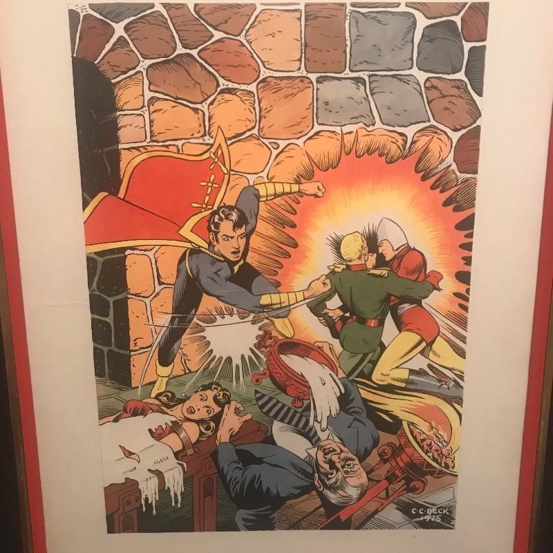 This CC Beck did not have any information with hit. The artwork is framed in a red and gold frame with glass . It measures 16” x 21”. Shipping available. Call UPS at 828-252-6930 for shipping quote prior to bidding.
