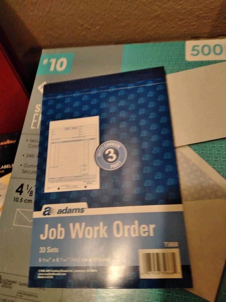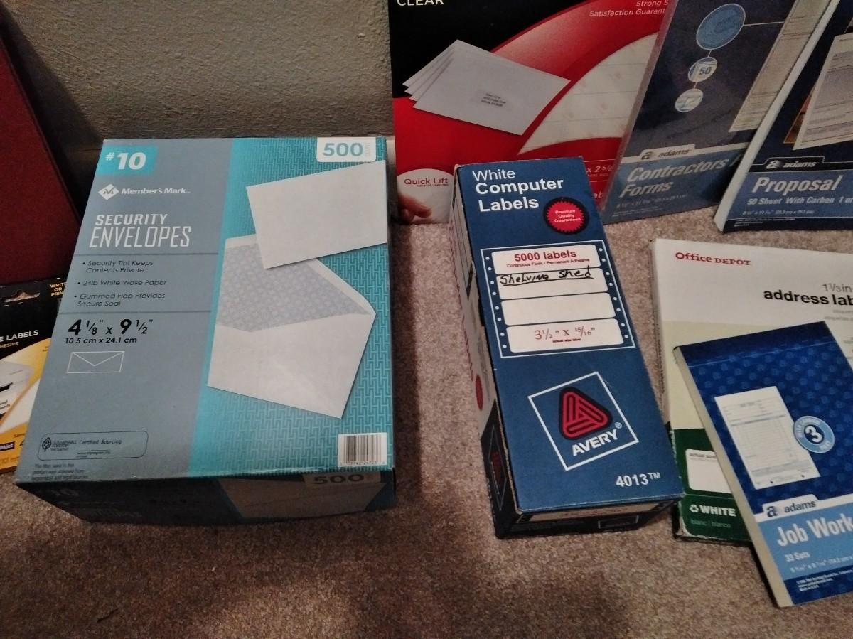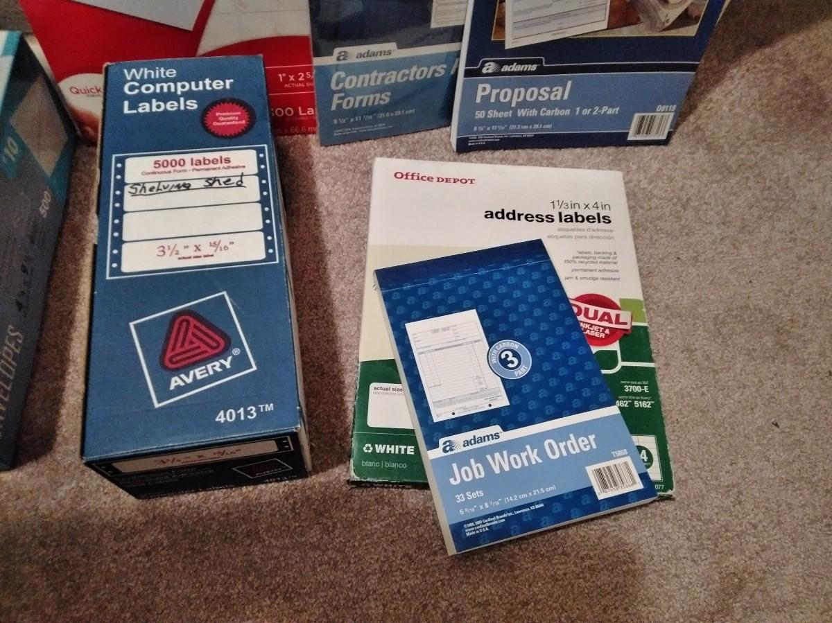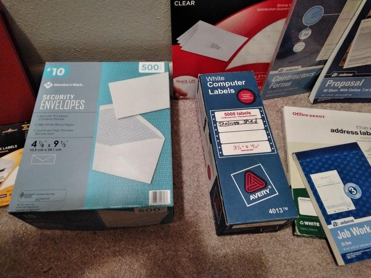 CONTRACTORS PROPOSAL FORMS, ADRESS LABLES, ADDRESS BOOK, JOB WORK ORDER PAPERS, LARGE BOX OF ENVELOPES, AND MORE