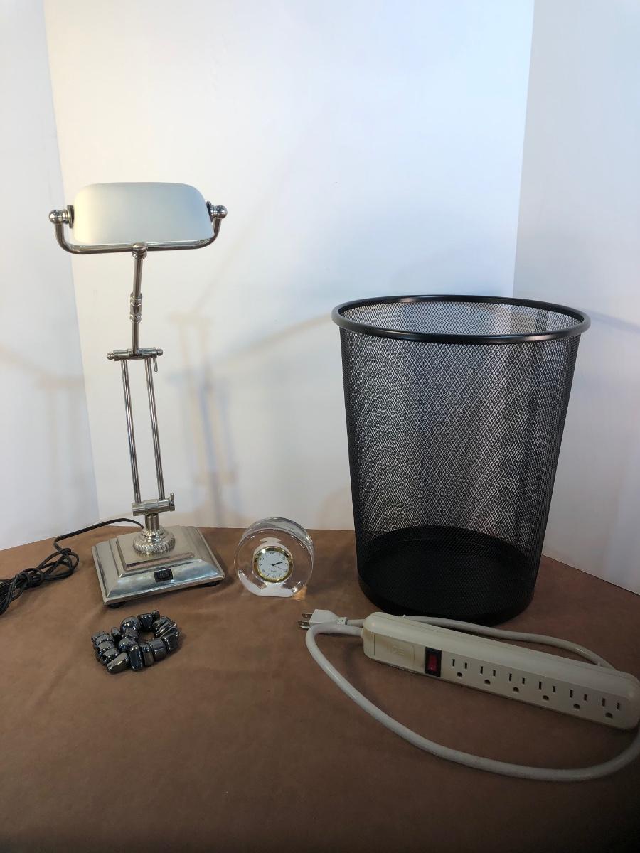 Lot 249. Desk Lamp, Clock, Wastebasket and Magnetic Fidget Sculpture