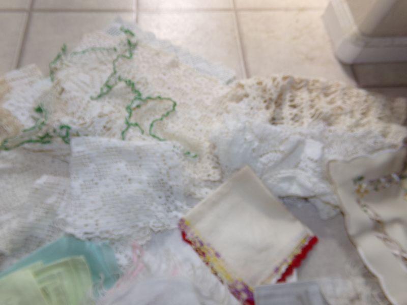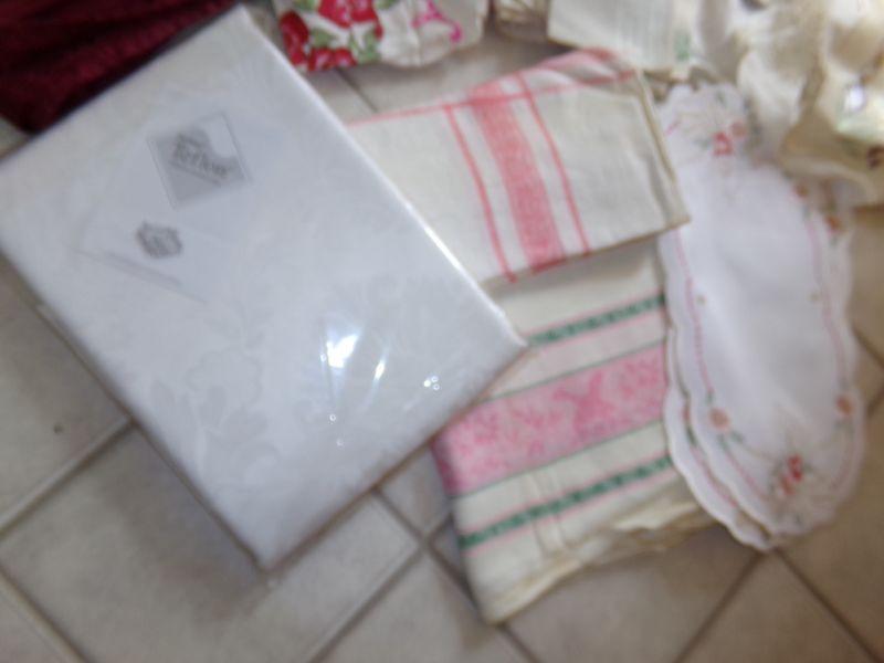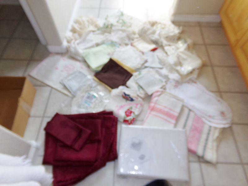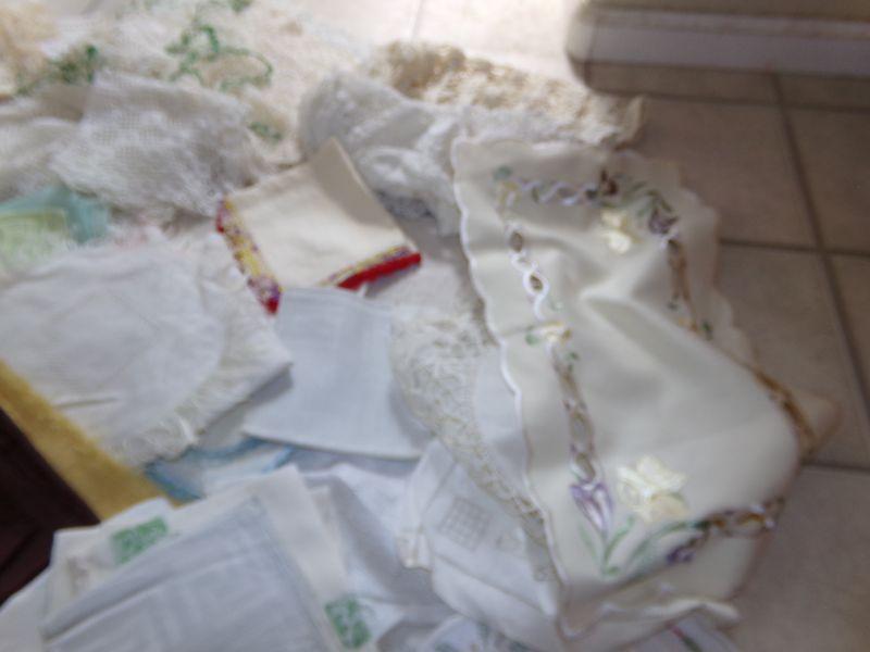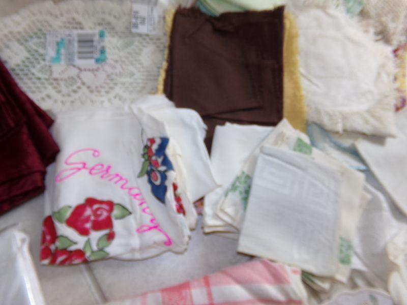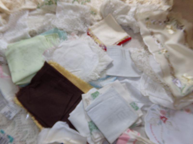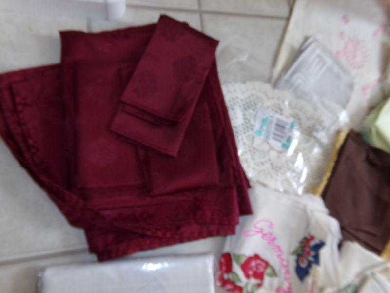 VARIETY OF HANDMADE DOILIES, LINEN NAPKINS AND TABLECLOTHS