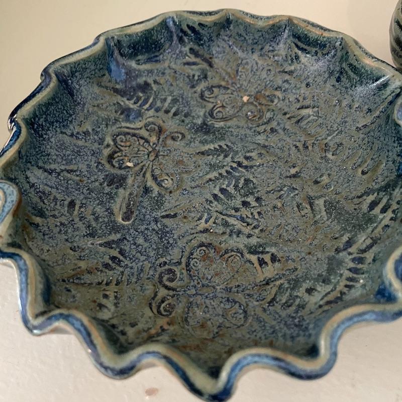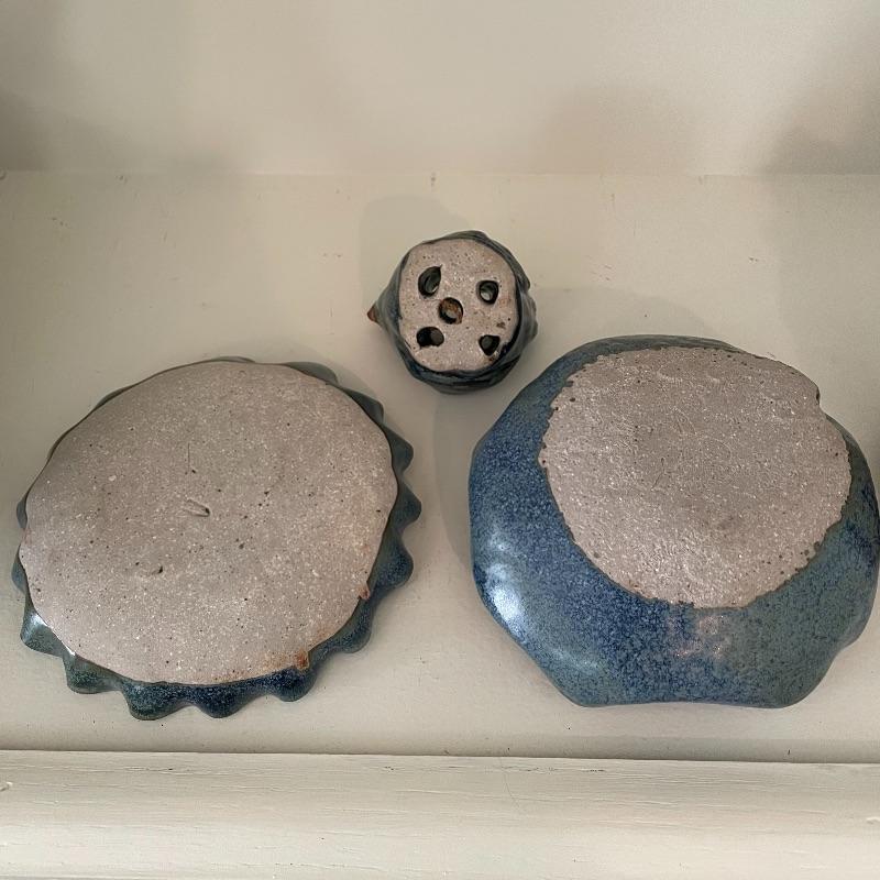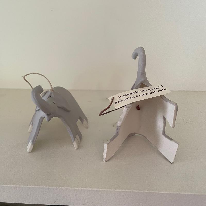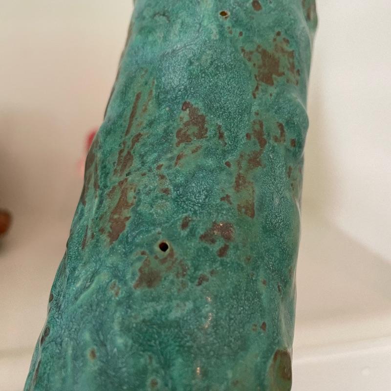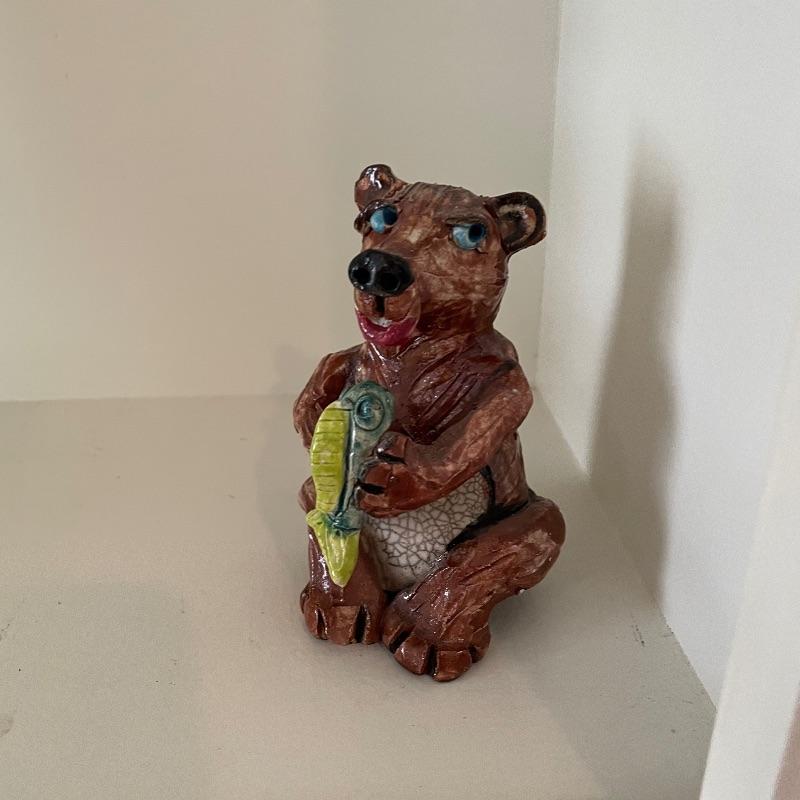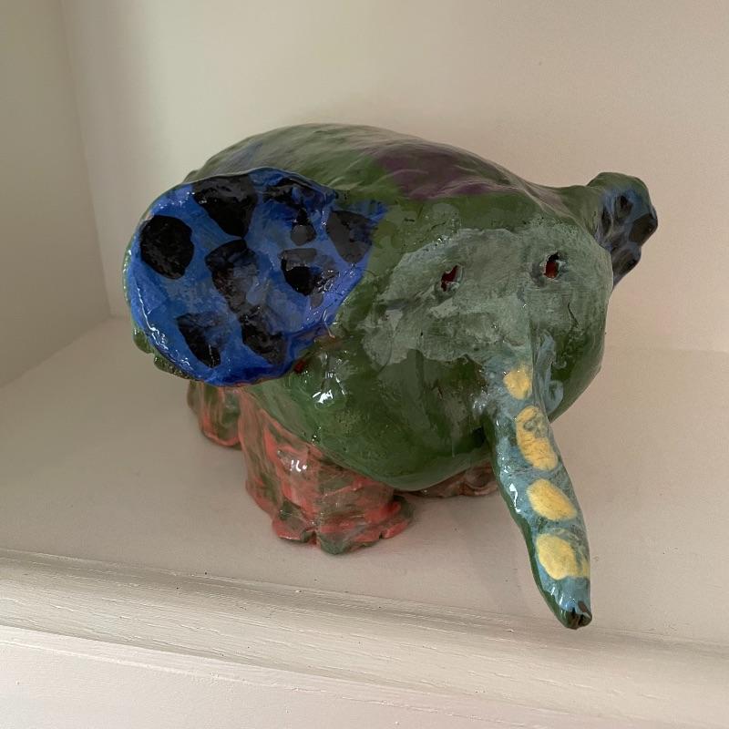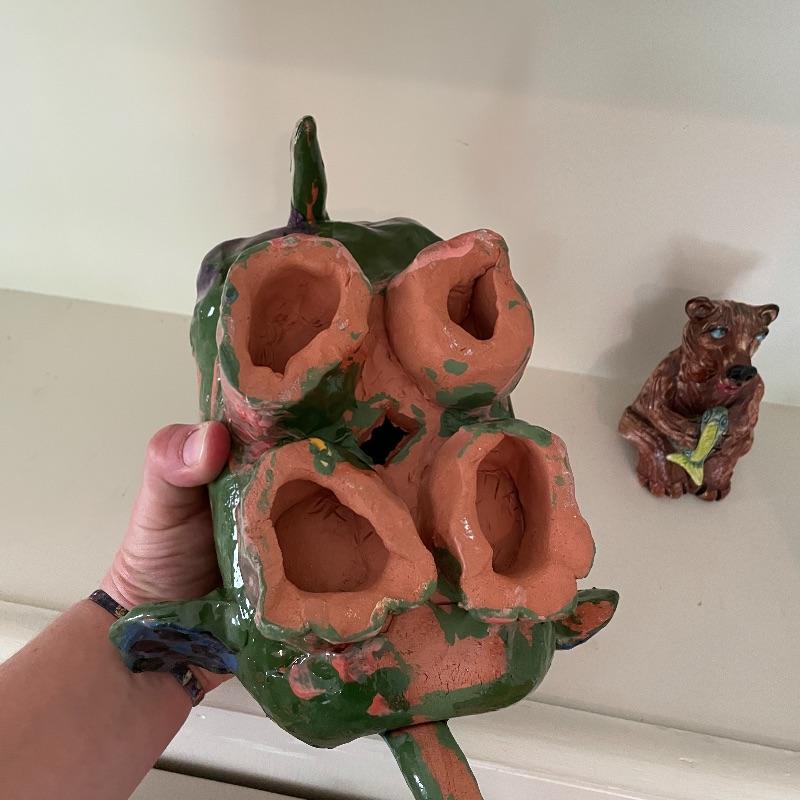 Here’s such a fun mix of professional and amateur pottery decor. There’s a beautiful 11” cylinder chime that makes music when moved and an adorable bear figuring that doubles as a whistle! Lot also includes two Evening Star Studio elephants, two small bowls, clown sponge bowl, and a bird frog. Lastly, lot features a big funky solid elephant. Show that funky side with this neat lot. Local pick up only.