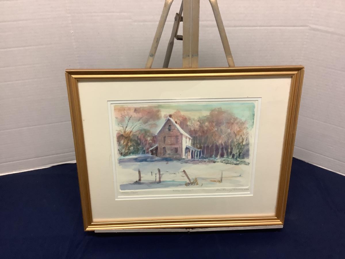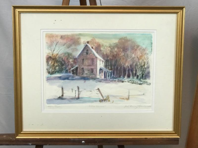 Jean Ranney Smith signed framed original monotype art “Old House” measures 19”x15”