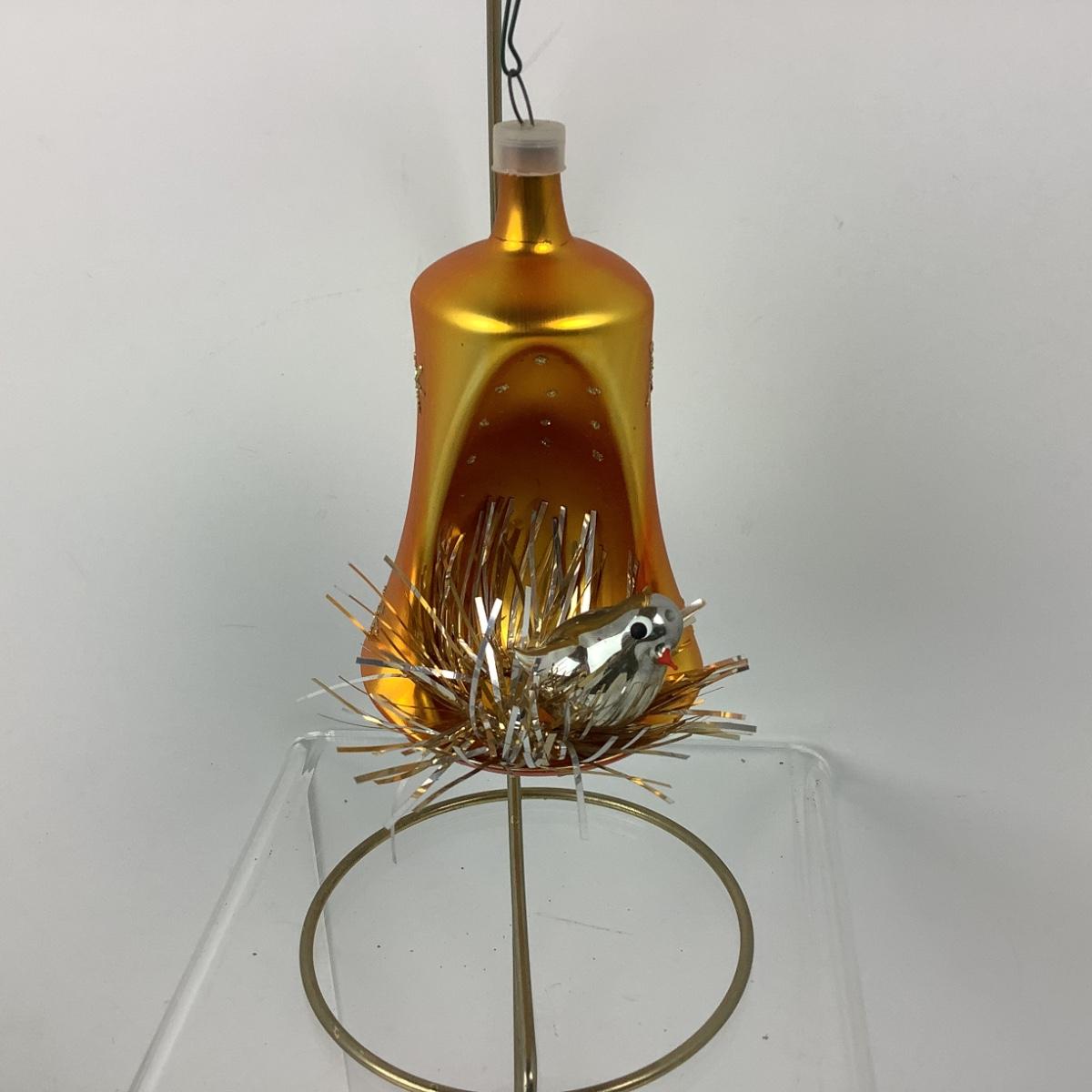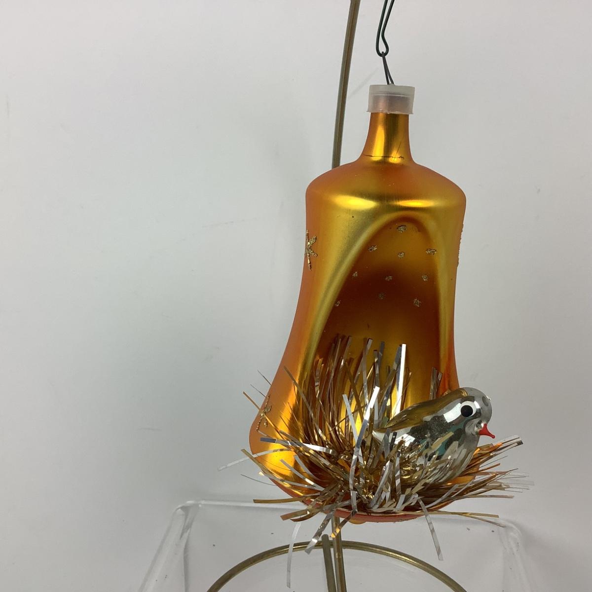 1 ) Vintage Blown Glass Jumbo Gold Teardrop Bird on Nest Diorama Christmas Ornament