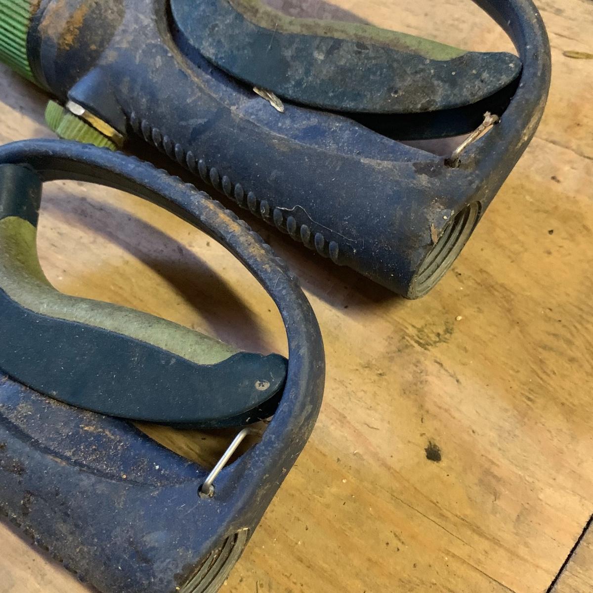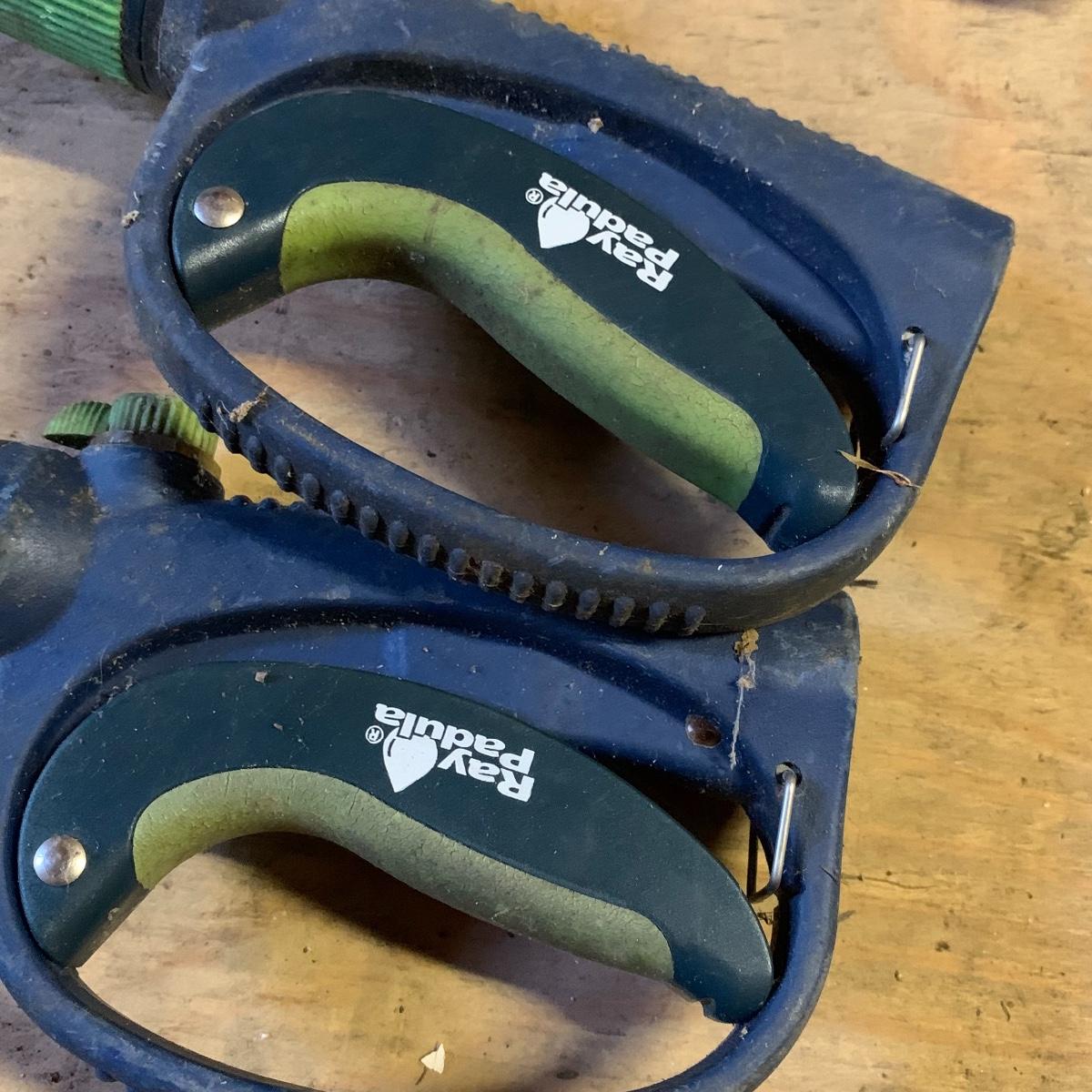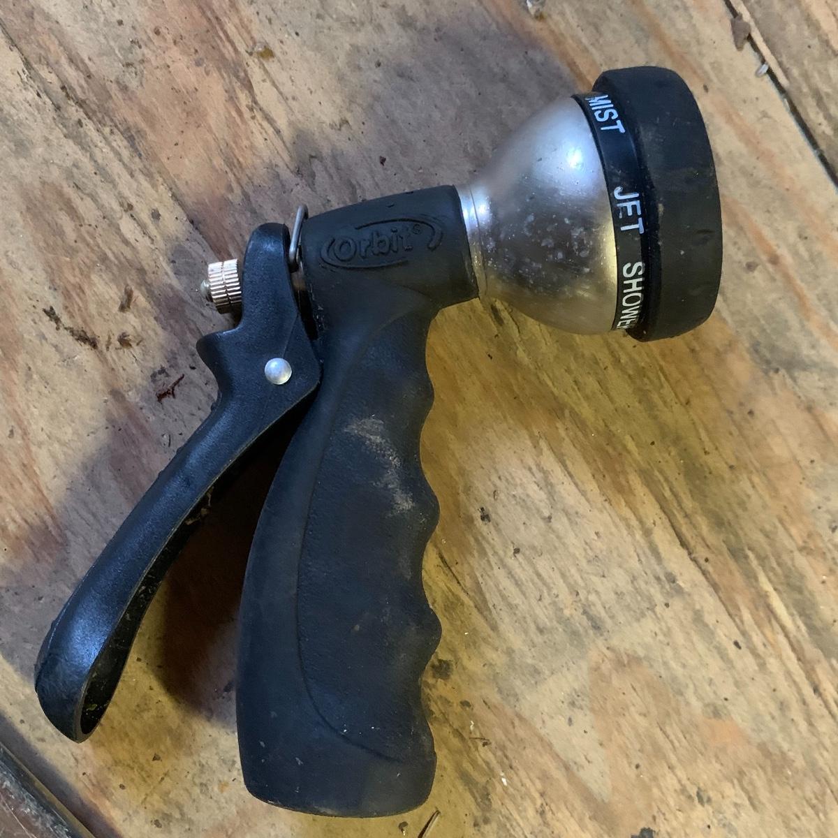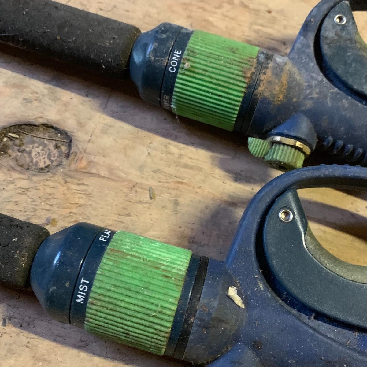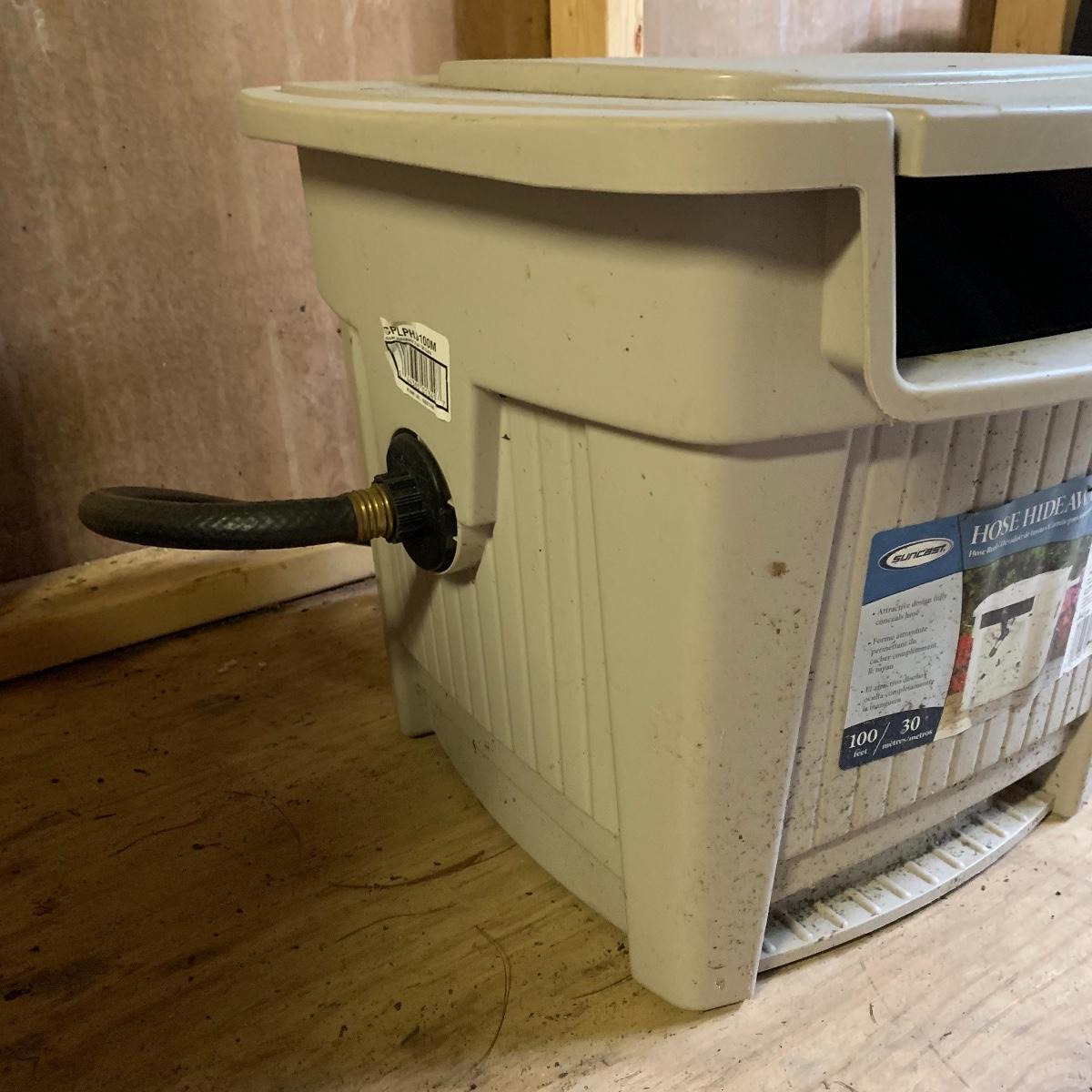 Water your garden with ease with the hose items found in this lot. Included are two hose reels with hoses, five long watering wands, and some sprinkler items. One hose reel is a Suncast Hose Hideaway hose reel that will hold 100 feet of hose. It is a light tan colored plastic tub with a lid that intends to fully conceal your hose. It measures about 19” x 19” x 16”. The other is a Suncast Hosemobile. It is a light tan plastic base that has two wheels and a handle. It measures about 19” x 19” x 22” with the handle height of 33”. Both hose reels are fully equipped with hoses. The watering wands are around 30-35” long. Two are Ray Paula brand that have a handle to control the wand and various stream settings. See photos for details. Local pickup only.