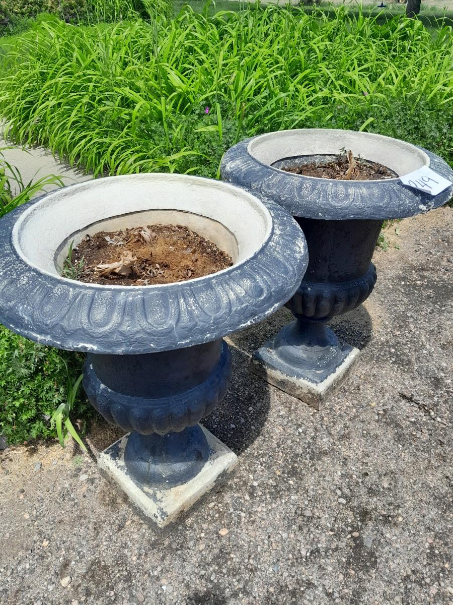 LOT 249 TWO URN STYLE PEDESTAL FLOWER POTS (OF)