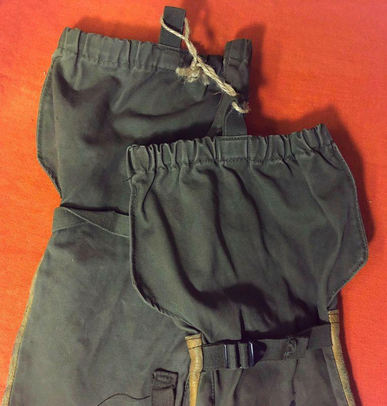 From the Korean War era here are a pair of OD canvas and leather Trigger Finger Mitten Shells...Mfg in 1951...one by the Scholl Mfg. Co. and one by the King Mfg. Co....they match. Normal use wear on this original period U.S. Issue...Size Large.