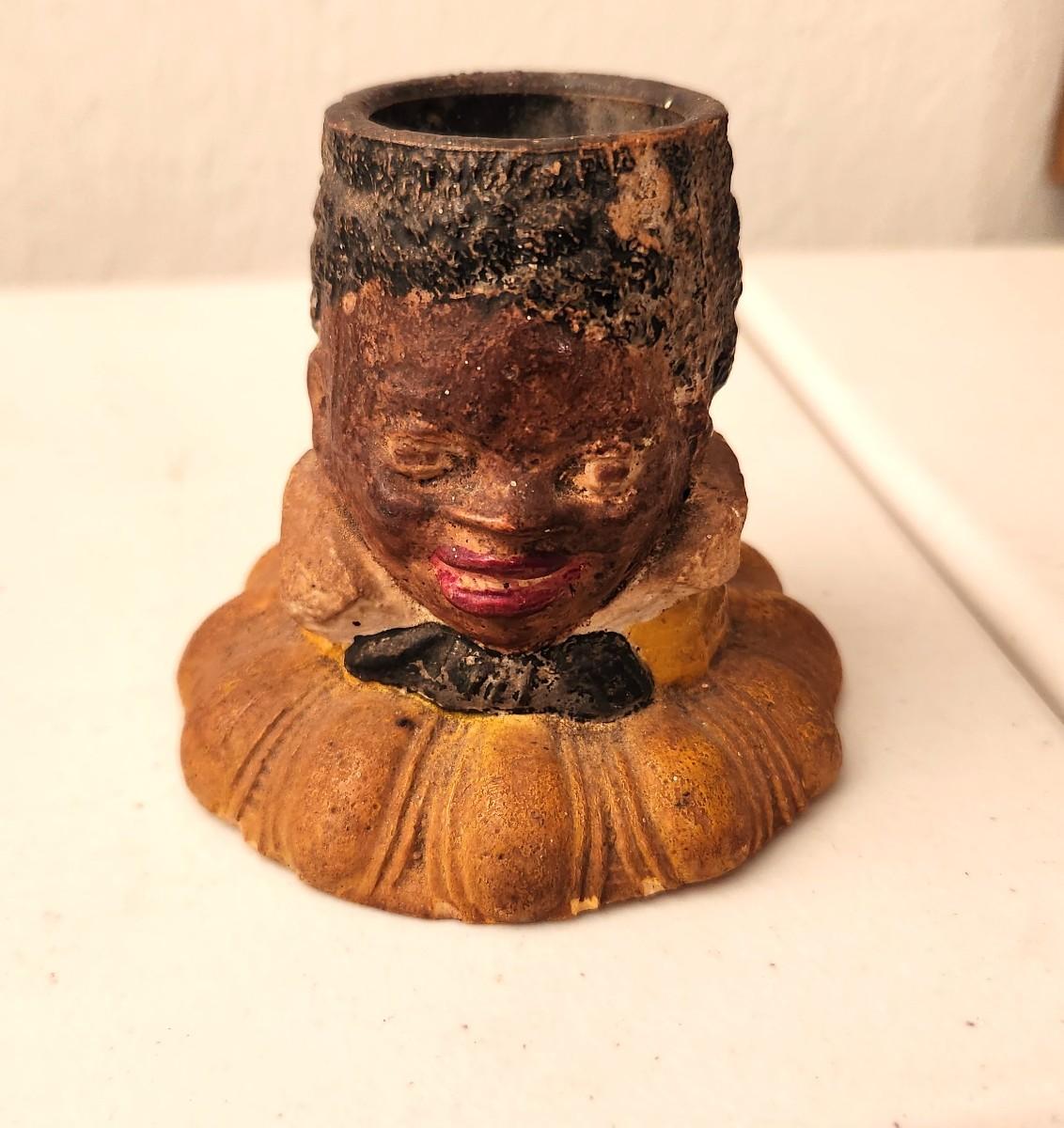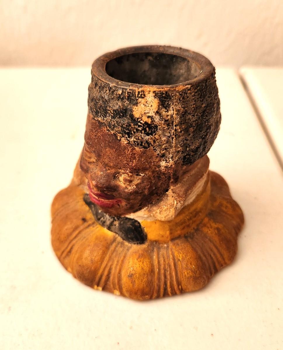 Scarce antique figural Black Americana chalkware match holder - no maker noted - 3.25" tall. Antique condition.