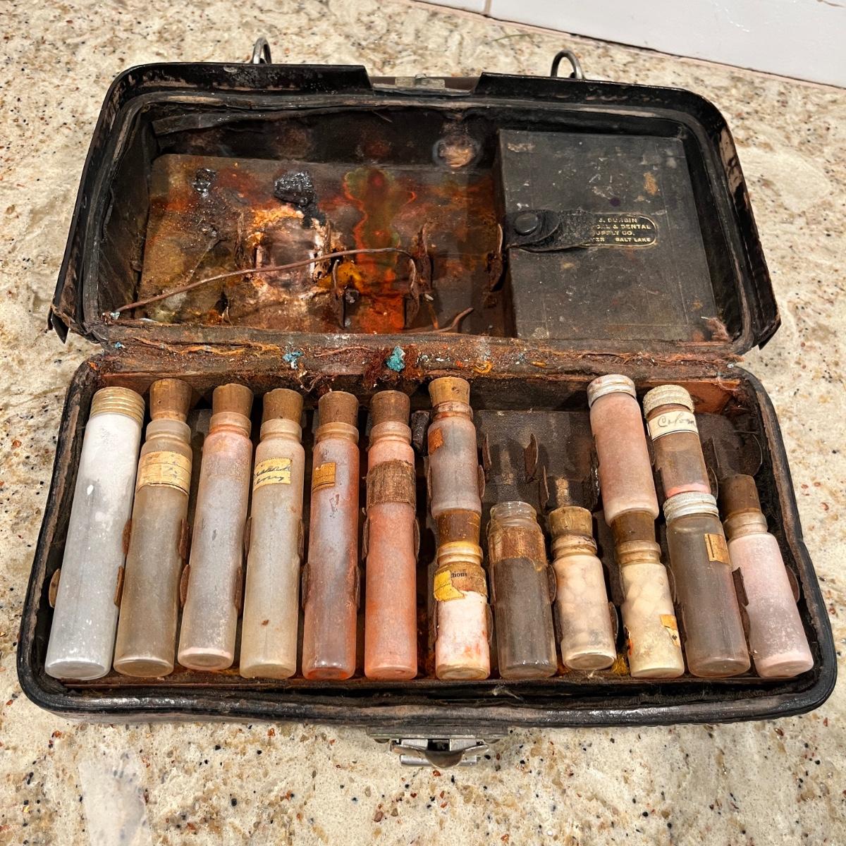 Quite old, not sure what all is in the bottles. Neat piece.