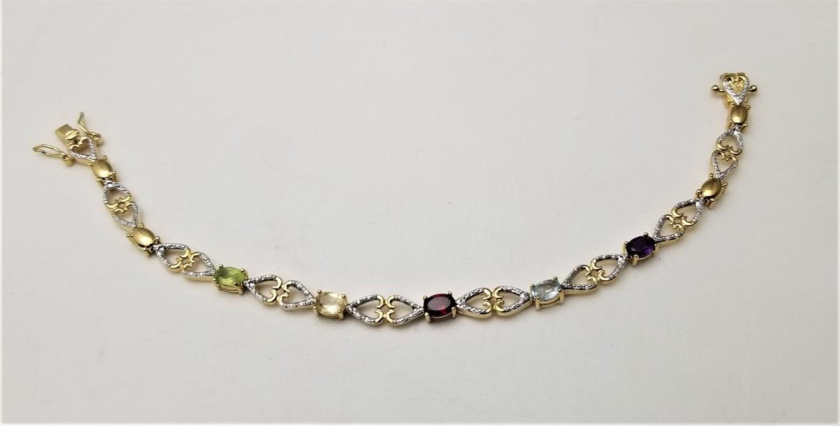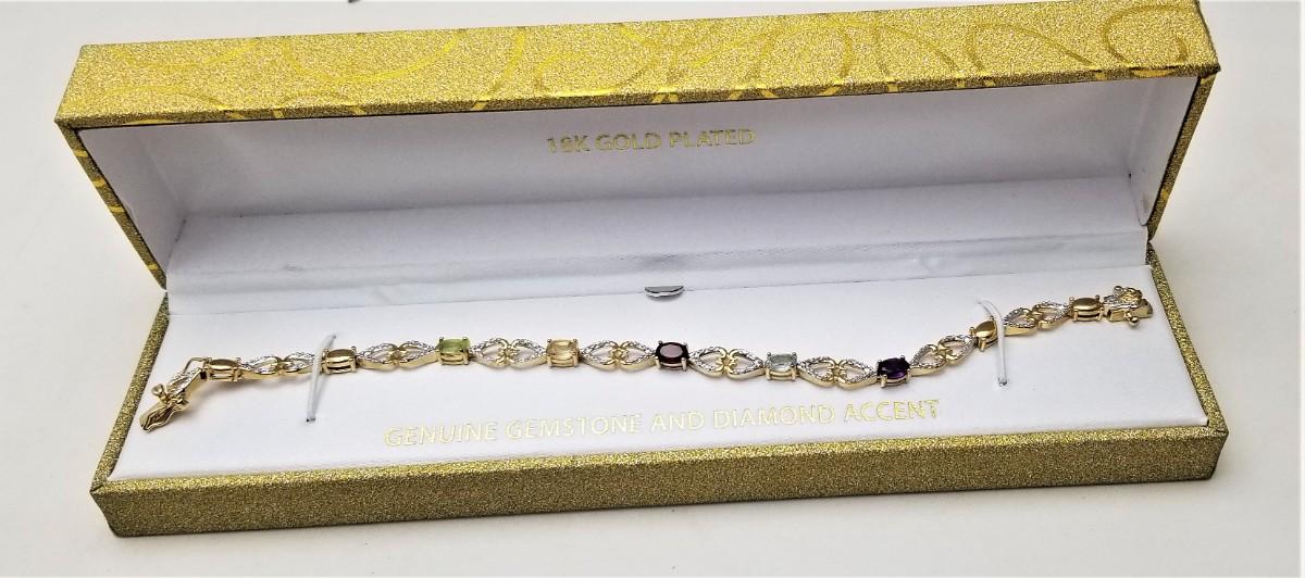 Lot #25 18kt Gold Plated Bracelet with Gemstones and Diamond Accents