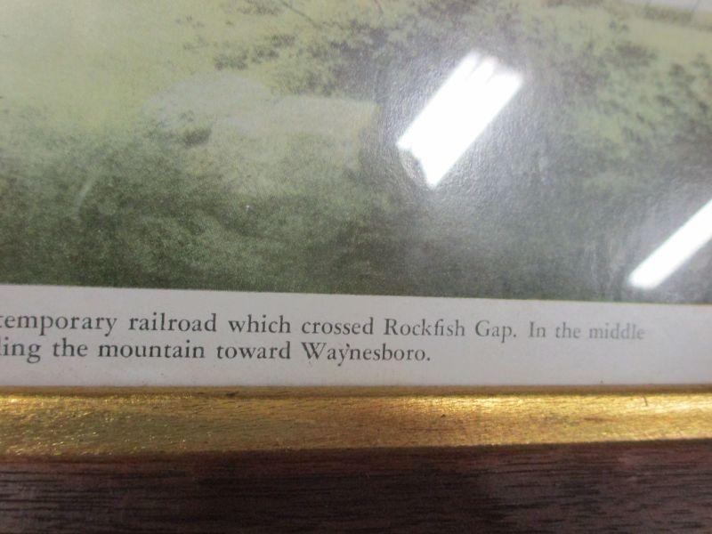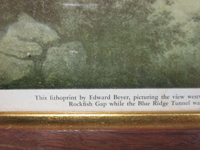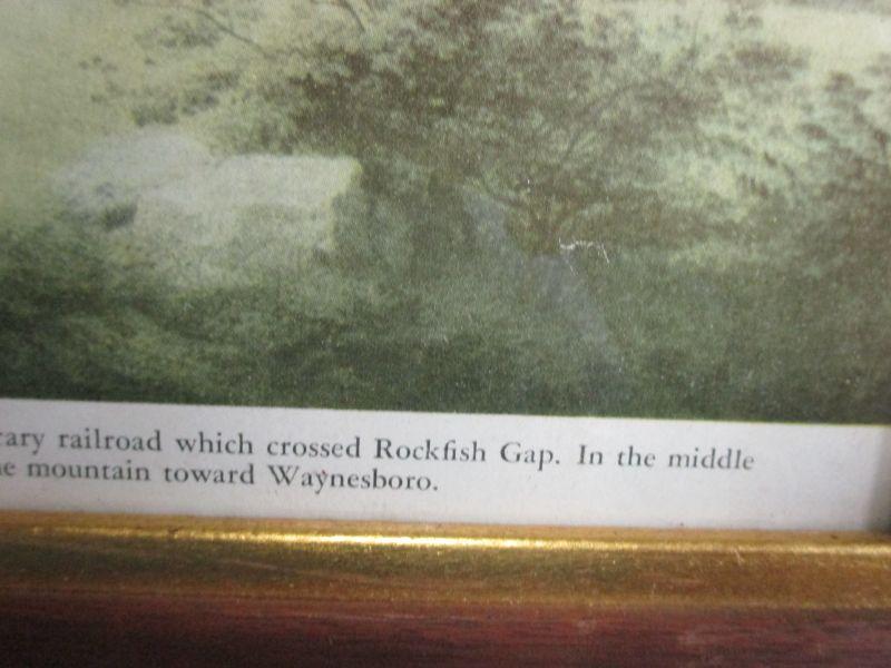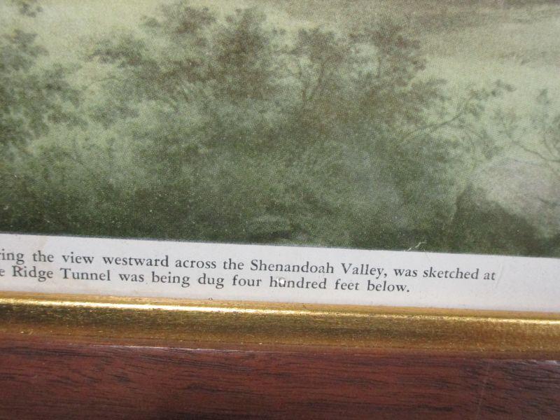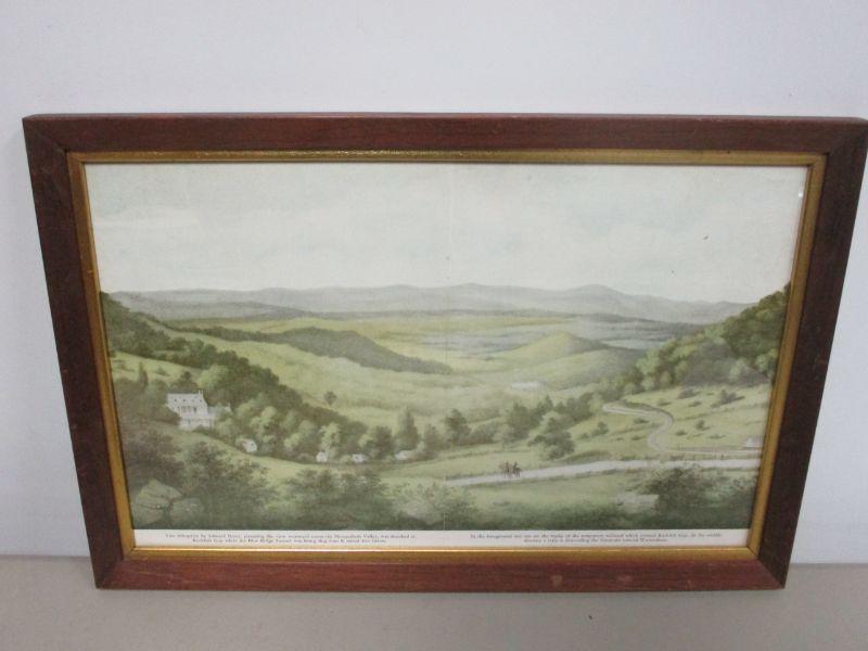 Picturing the view westward across the Shenandoah Valley. Please see pictures for condition frame and litho have some damage. Size approx 18 x 12