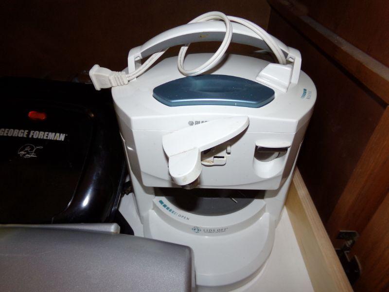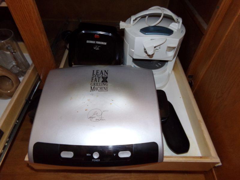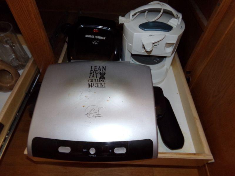 1 SMALL AND 1 LARGE GEORGE FOREMAN COOKERS. ALSO A BLACK & DECKER "LIDS OFF" TO REMOVE/OPEN LIDDED ITEMS