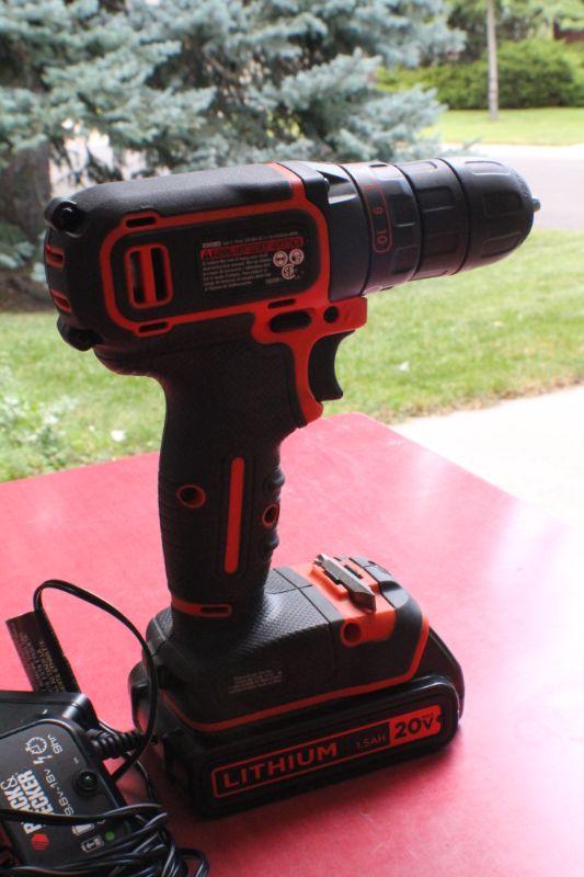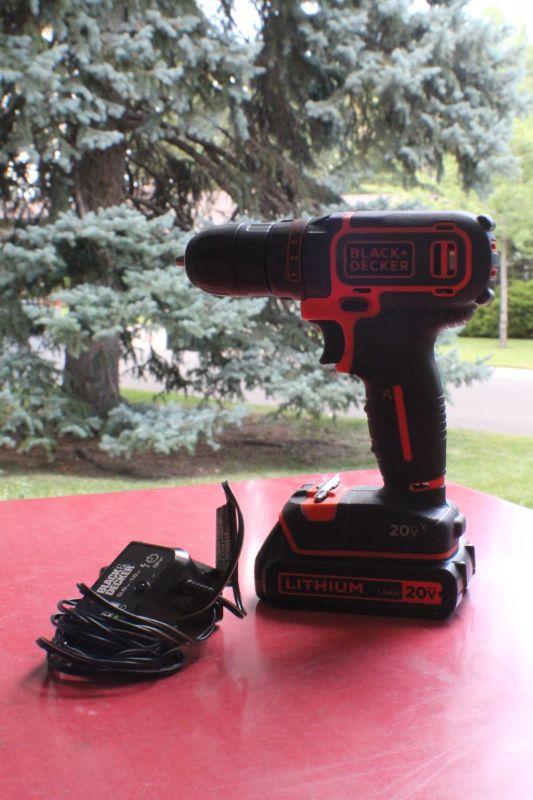 LOT #25: 20 Volt Lithium Black and Decker Cordless Drill w/ Charger TESTED A+