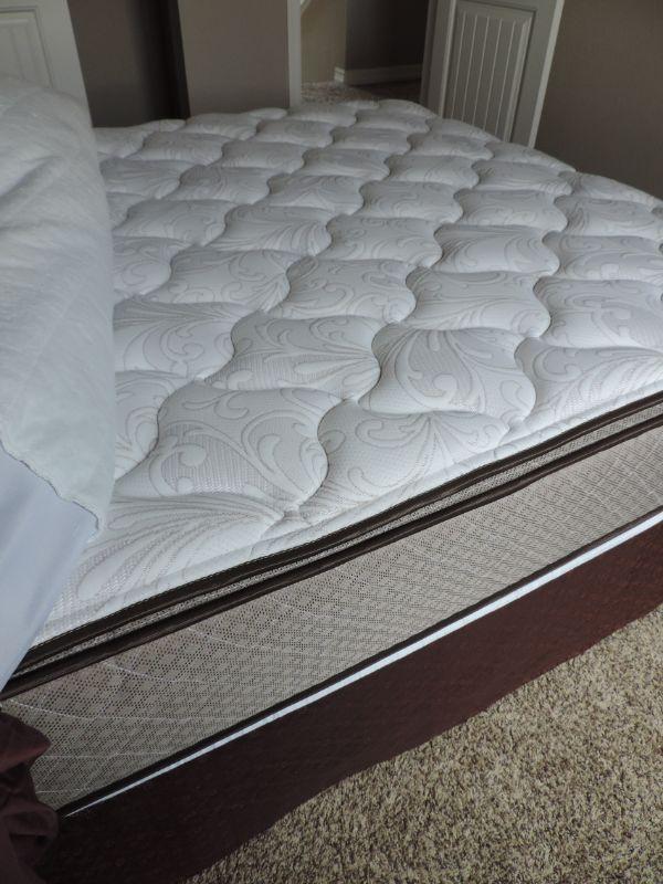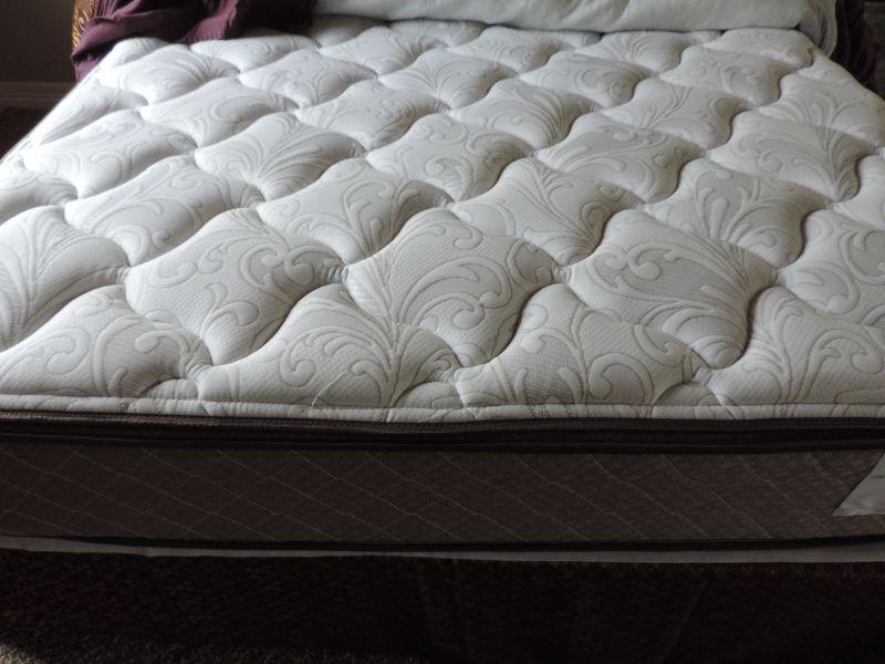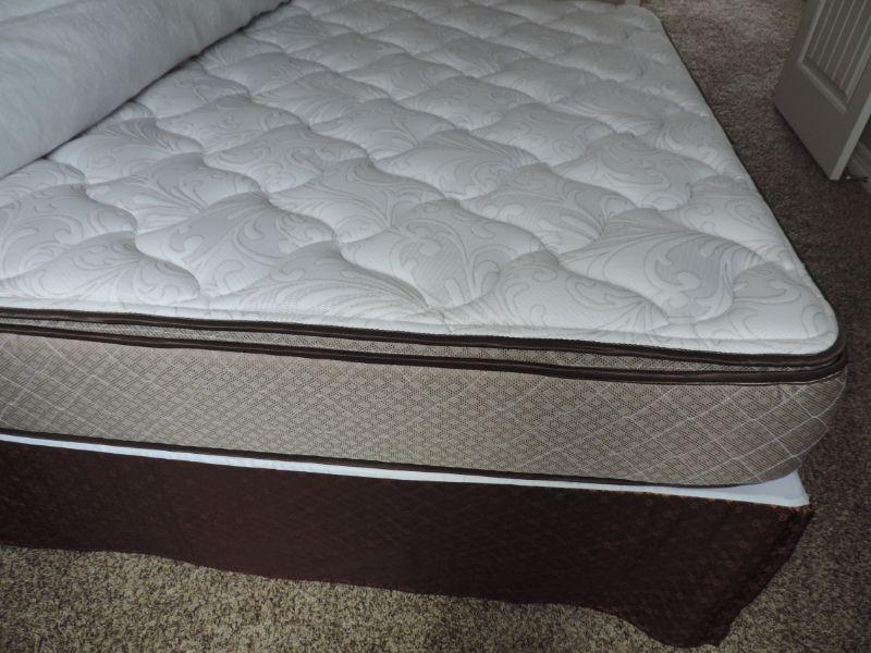 LIKE NEW HAMPTON & RHODES QUEEN MATTRESS SET & FRAME