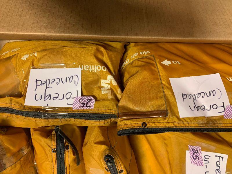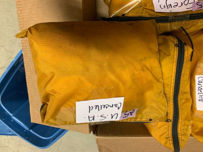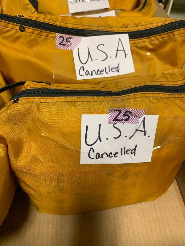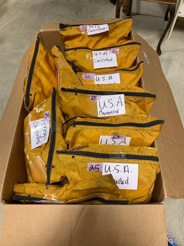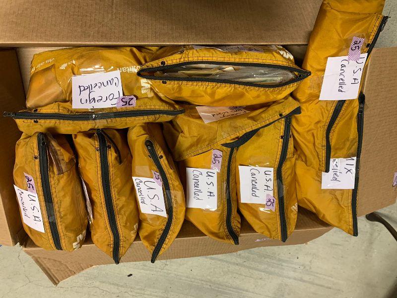 Stamps: USA cancelled 5 1/3 bags, Foreign cancelled 2 bags, mixed cancelled. 1/4 bag unused foreign.
