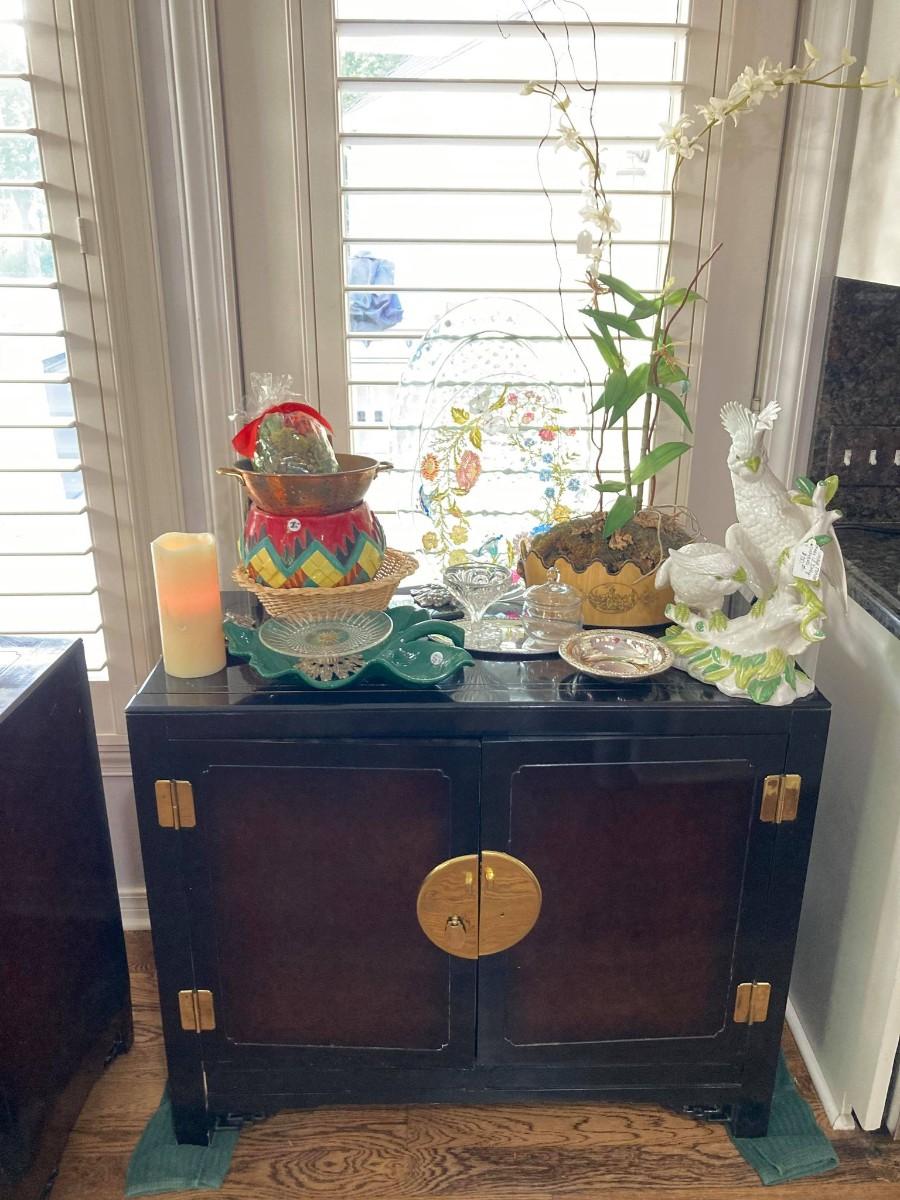 Lot 25: Asian Side table and decor