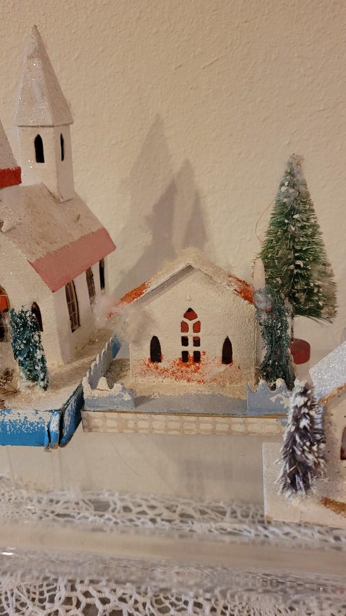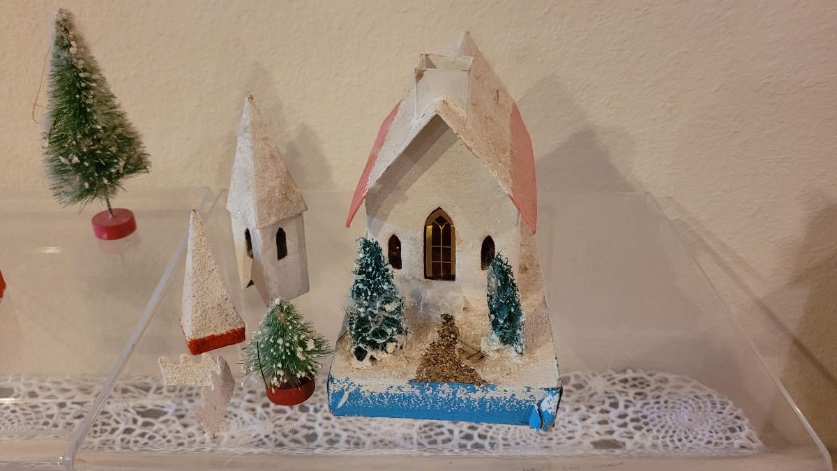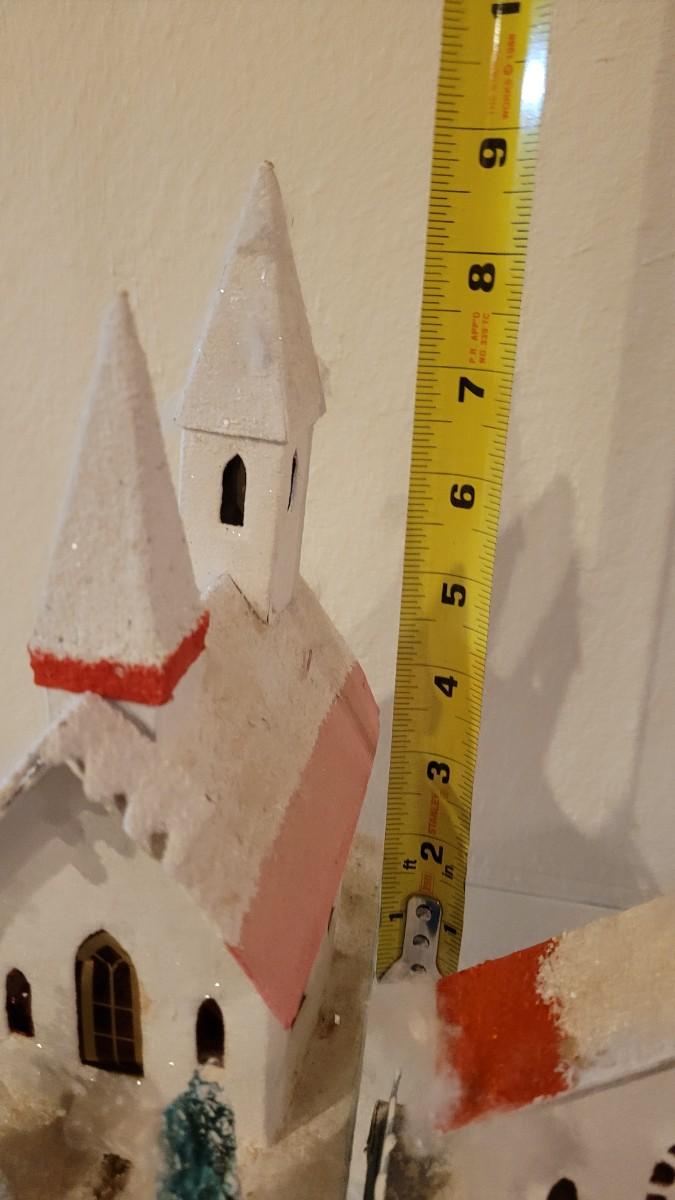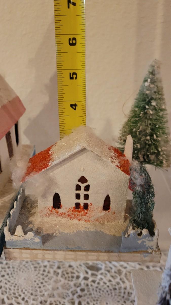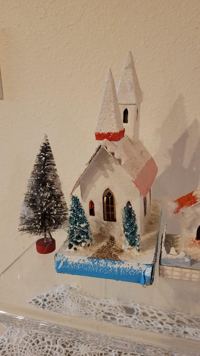 Lot 25: Vintage Putz Paper/Cardboard Christmas Houses - 13 total Buildings includes the Church