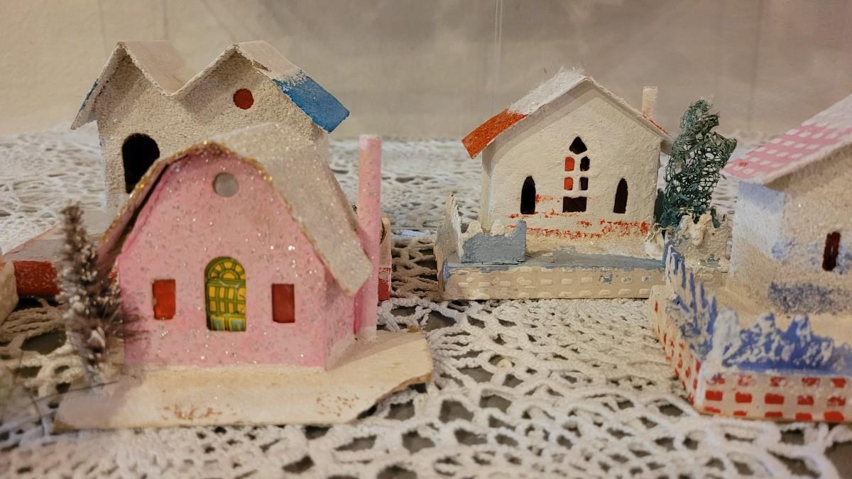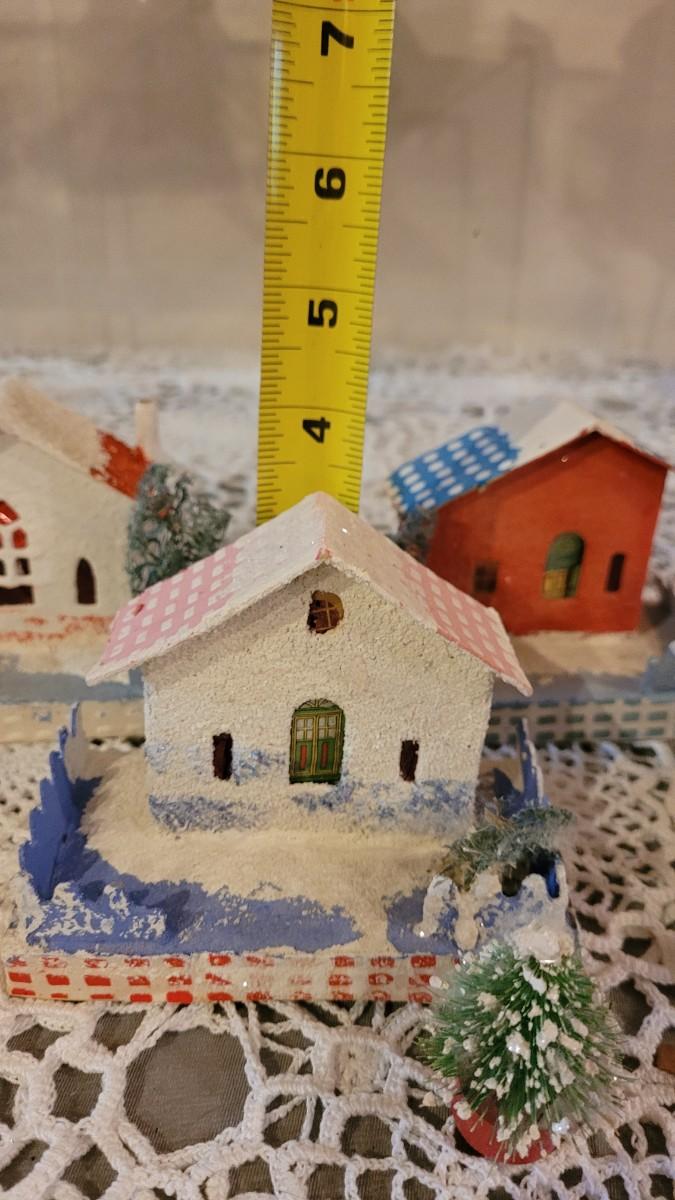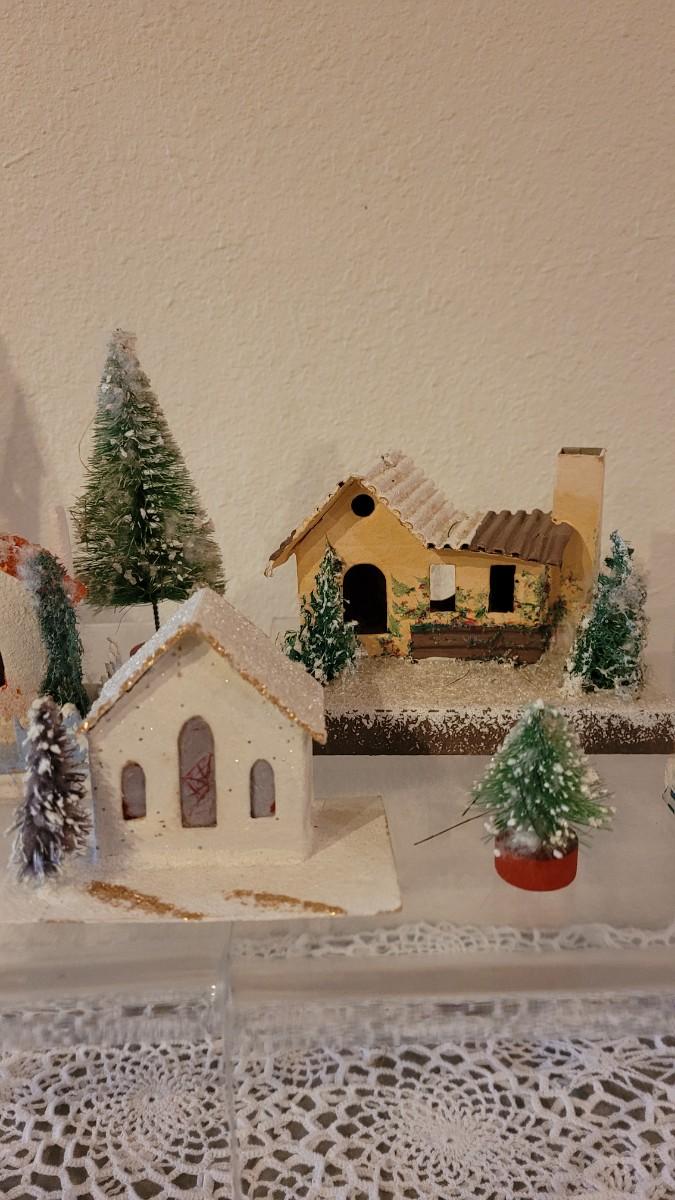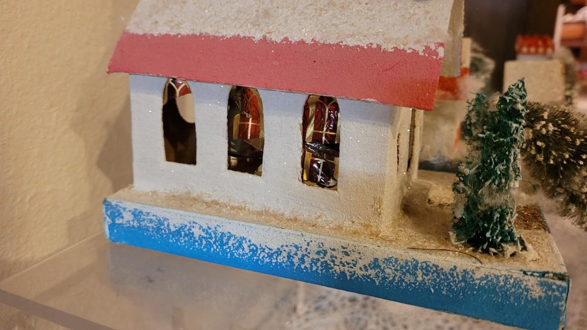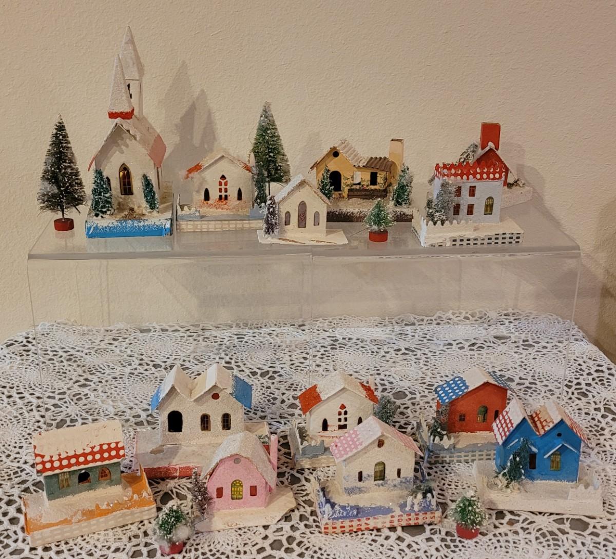 Lot 25: Vintage Putz Paper/Cardboard Christmas Houses - 13 total Buildings includes the Church