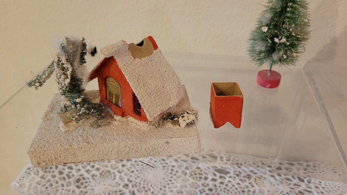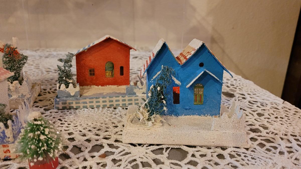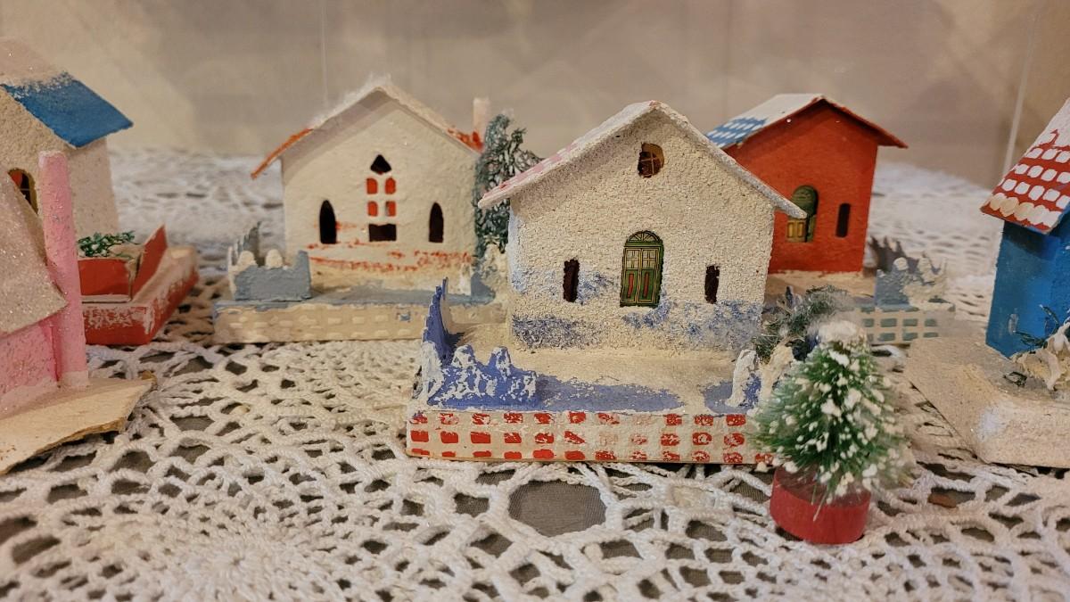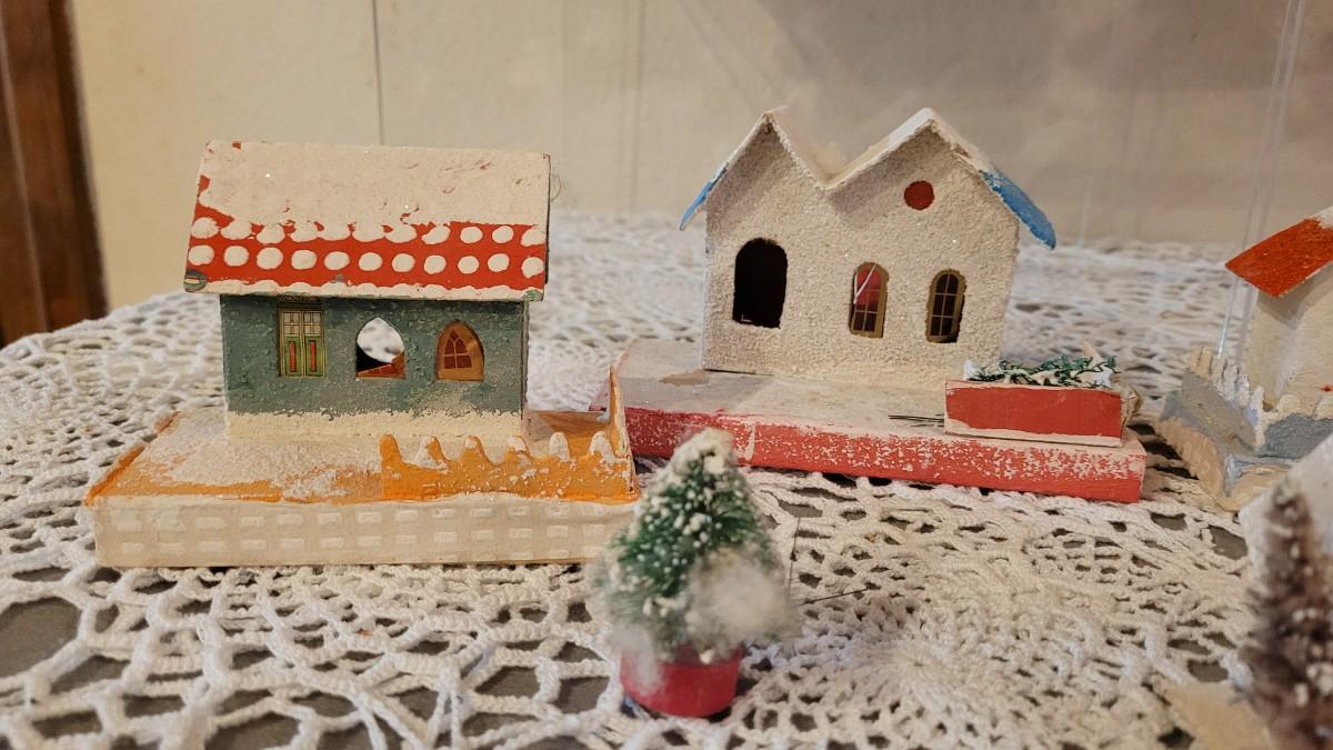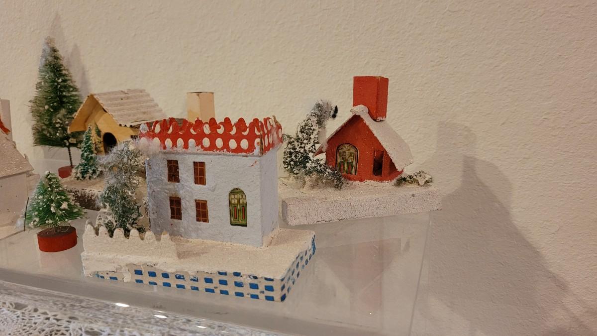 Lot 25: Vintage Putz Paper/Cardboard Christmas Houses - 13 total Buildings includes the Church