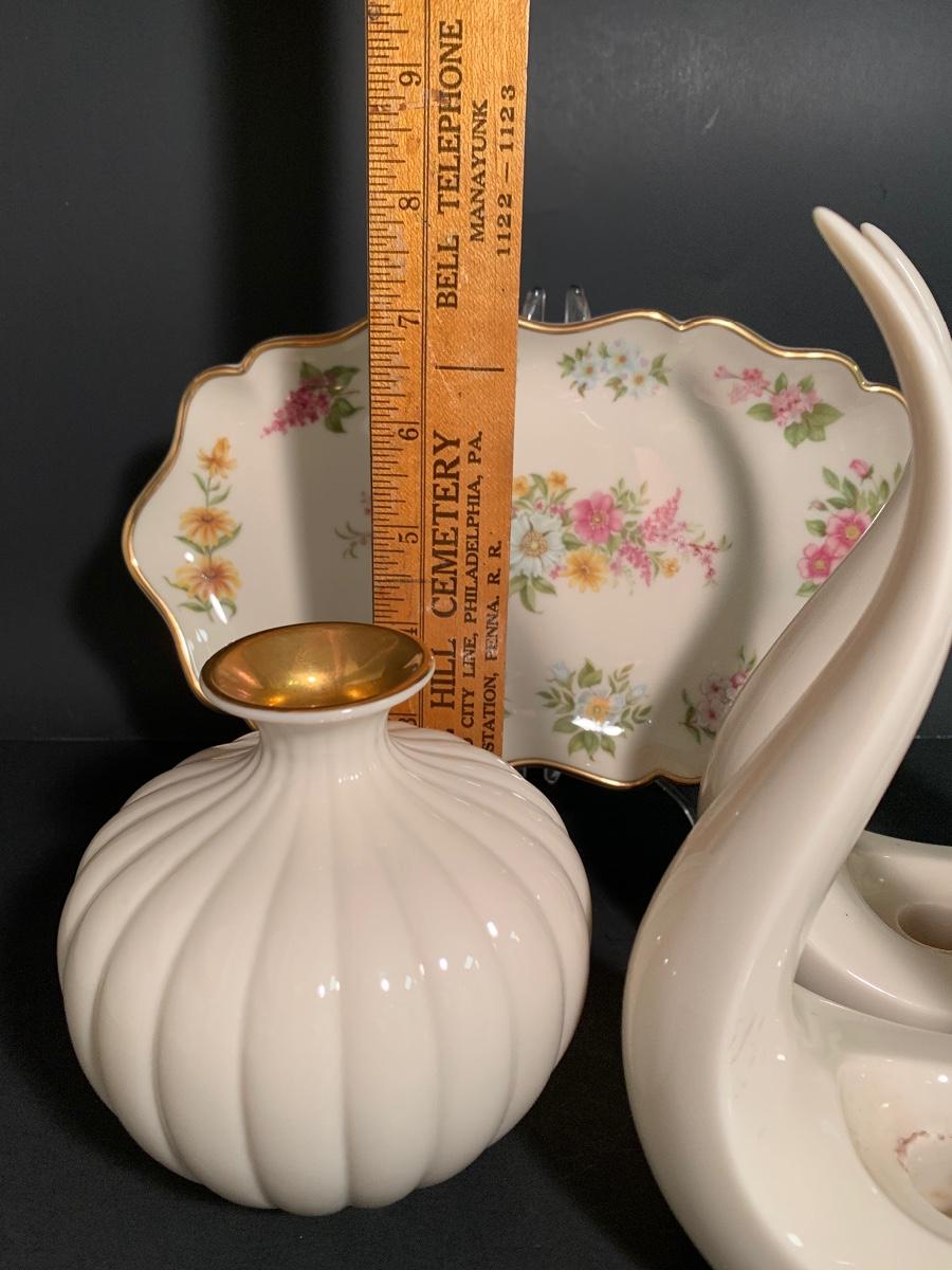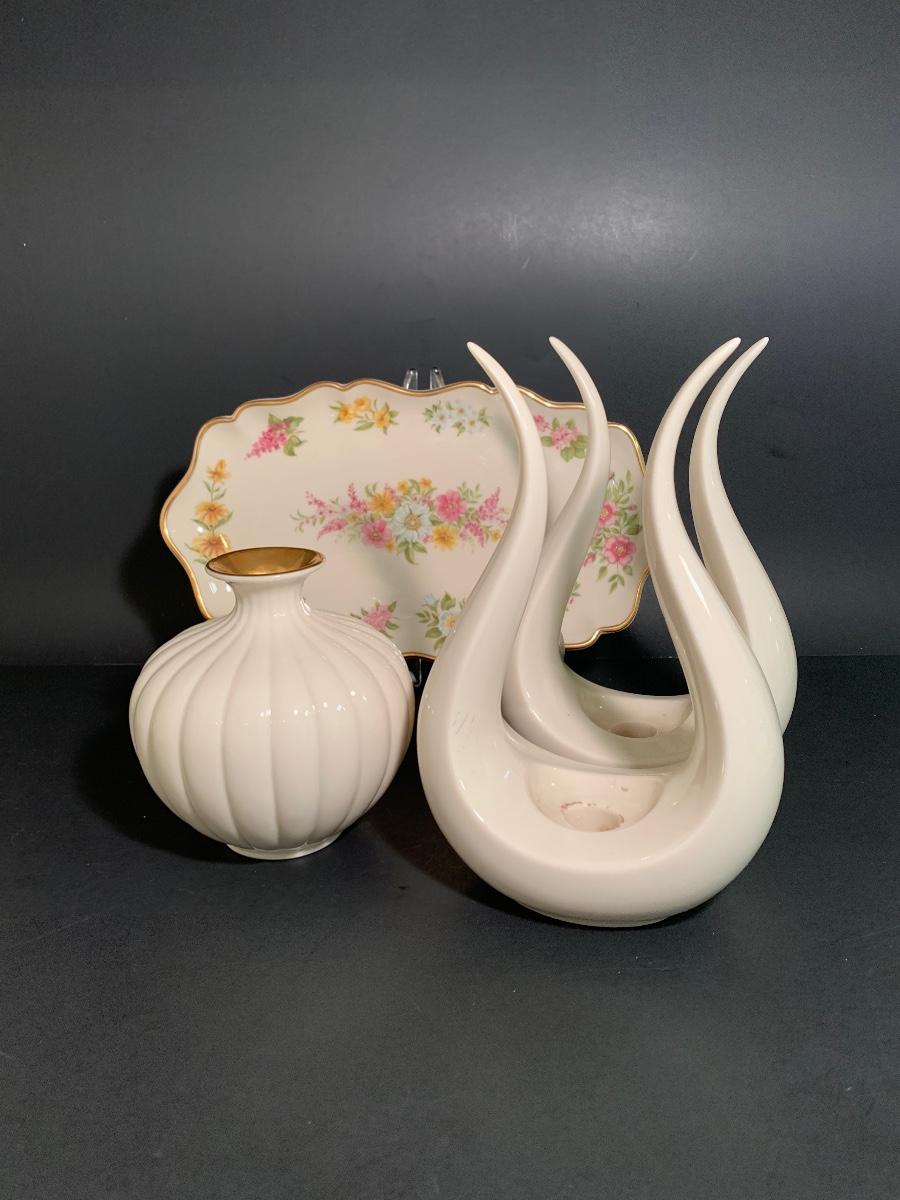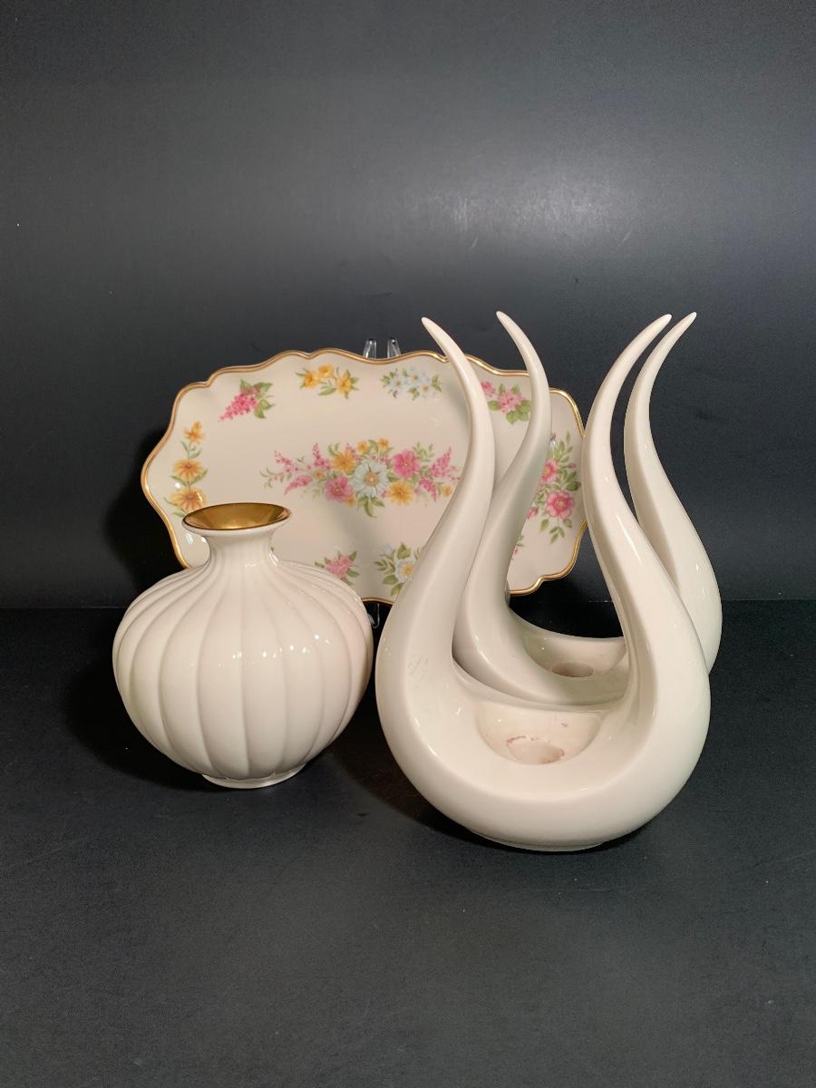Beautiful vintage collection of Lenox. There a pair of MCM Tulip Leaf Lyre Candlestick Holders which are