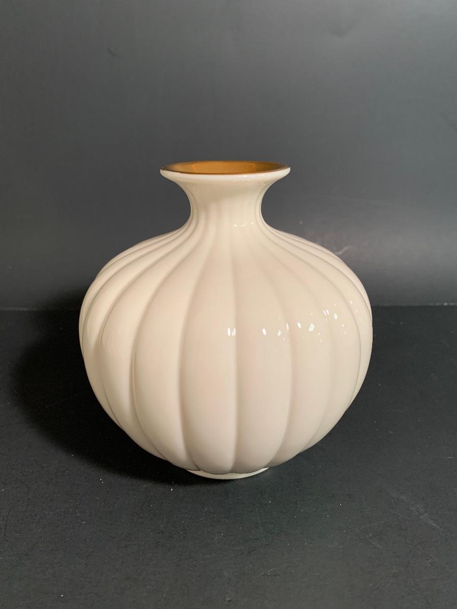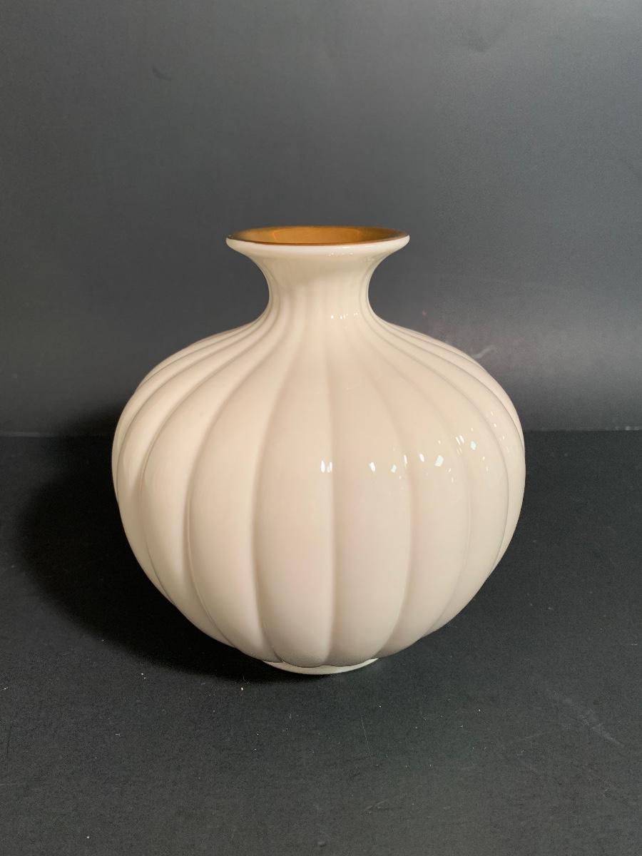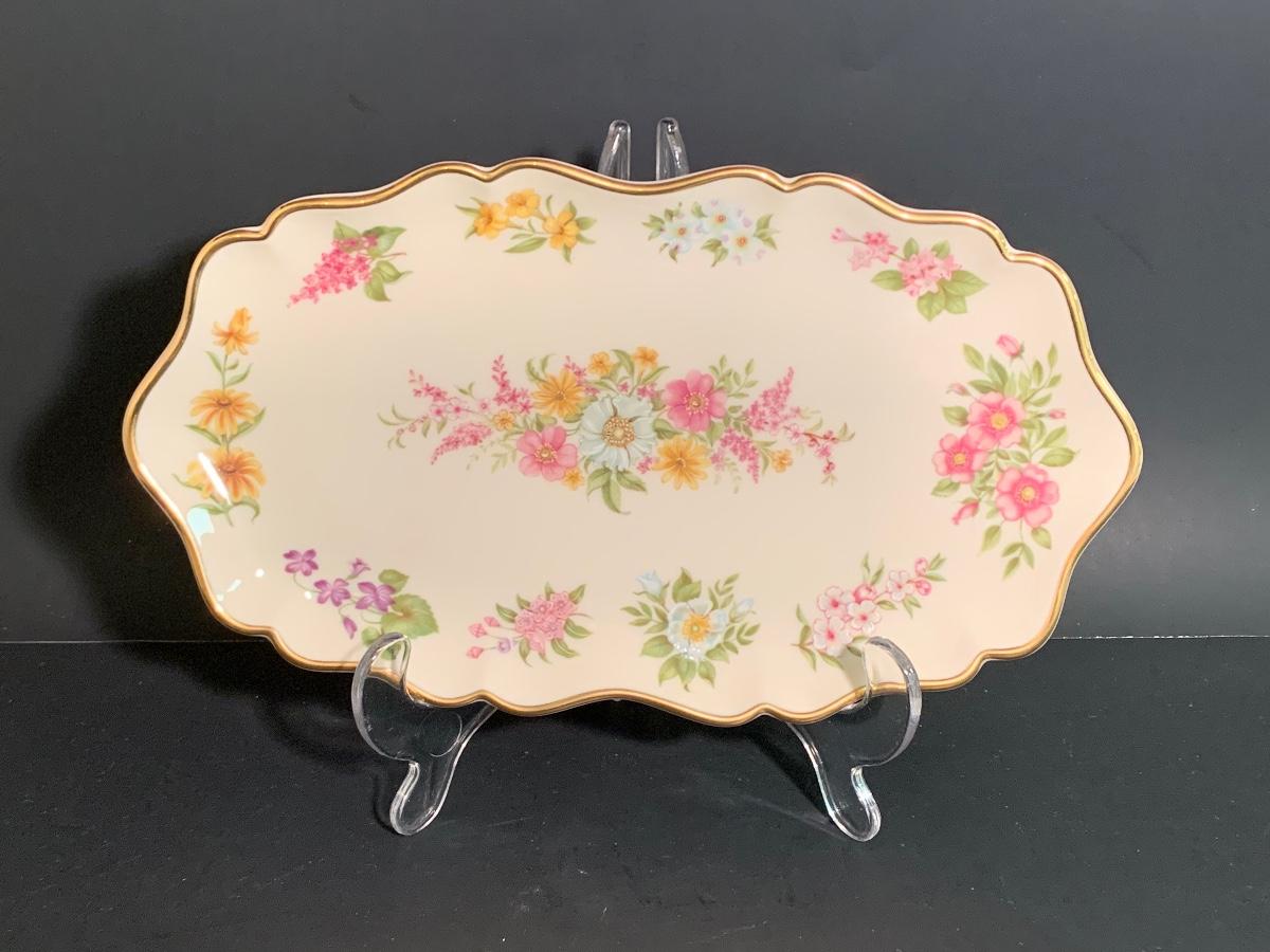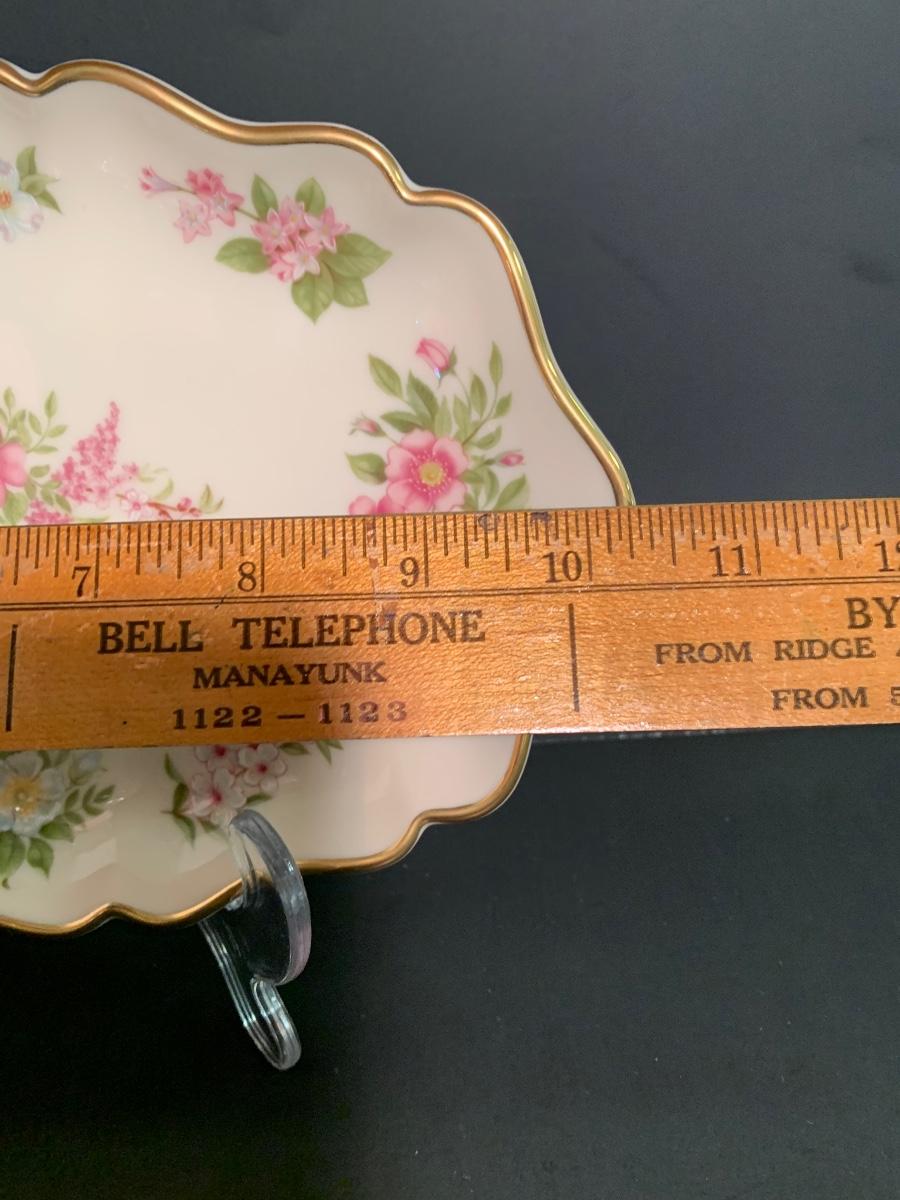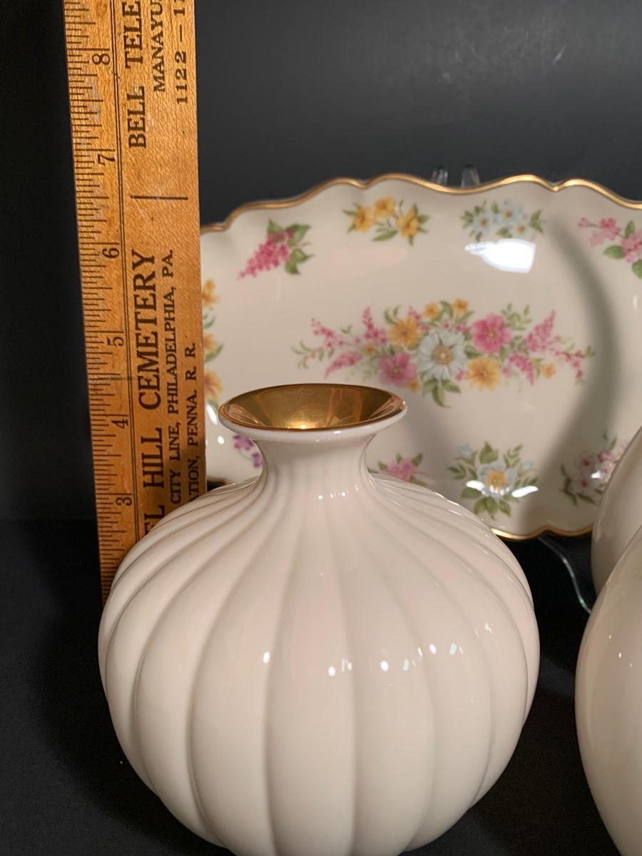 Lot 25: MCM Lenox Tulip Leaf Candlestick Holders, 24k Gold Trimmed Vase & Floral Candy Dish
