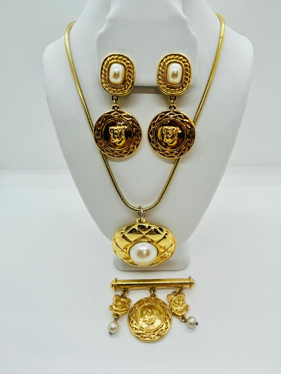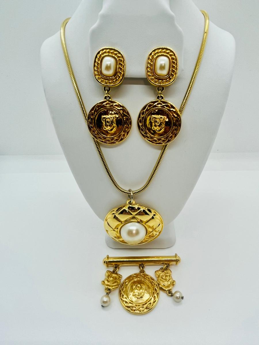 Clip-on Earrings and brooch by Liz Claiborne. 2 unsigned necklaces with faux pearls. The pictures show condition, measurements if taken, and what is included in the lot. Due to the large amount that we photograph and the time frame, we are not always able to take measurements. All items unless noted, are pre-owned and have been used, and are untested. Thank you