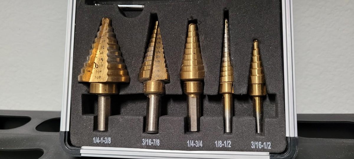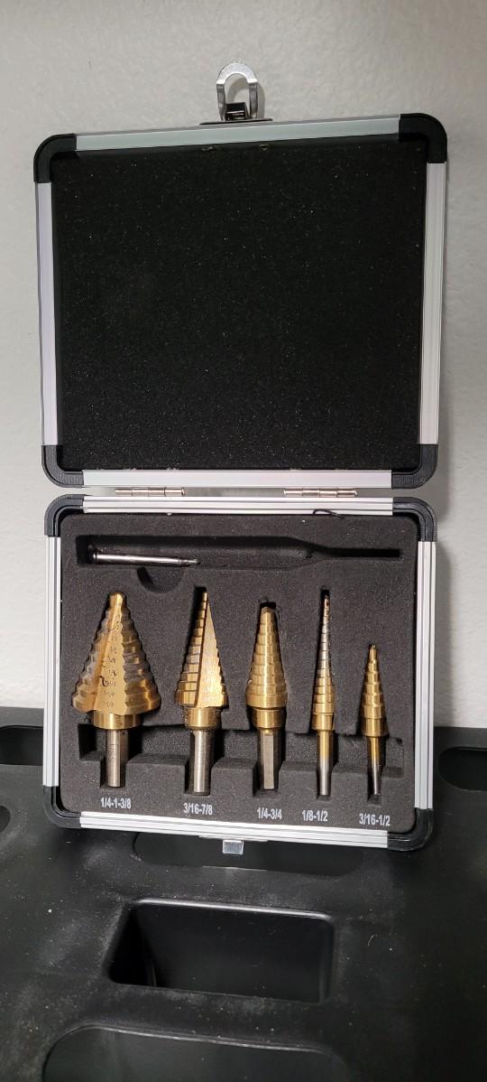 Lot 25: Titanium Coated Step Drill Bits with Case