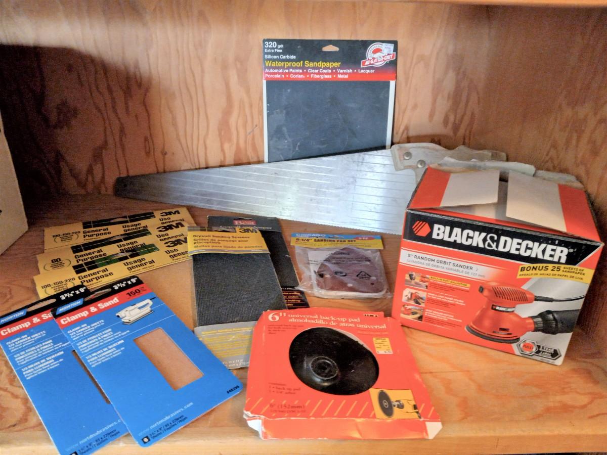NEW ORBIT SANDER, SANDPAPER, HAND SAW AND MORE