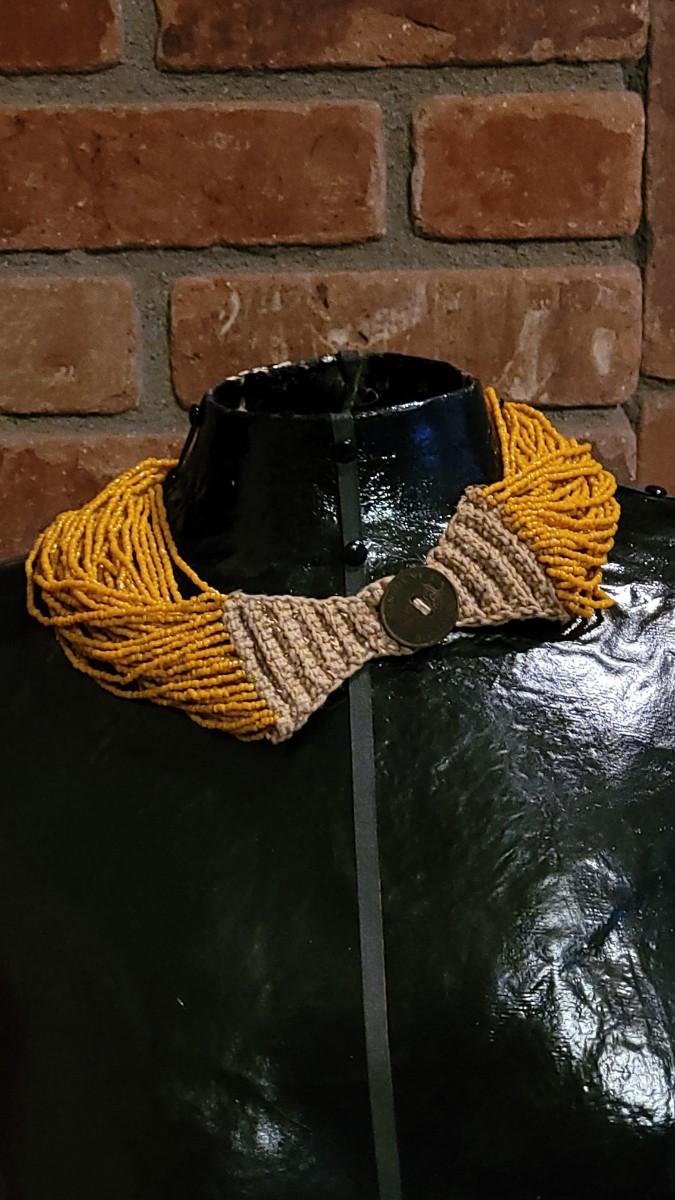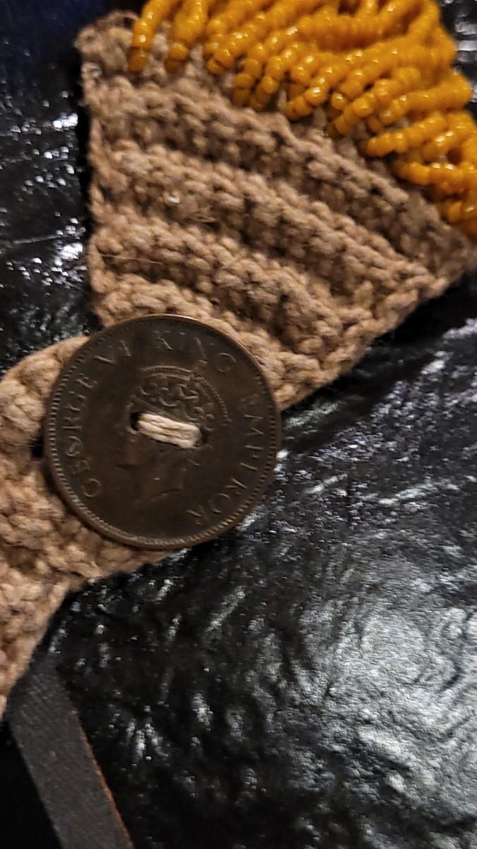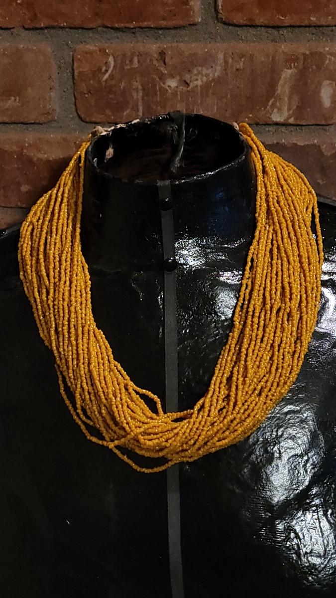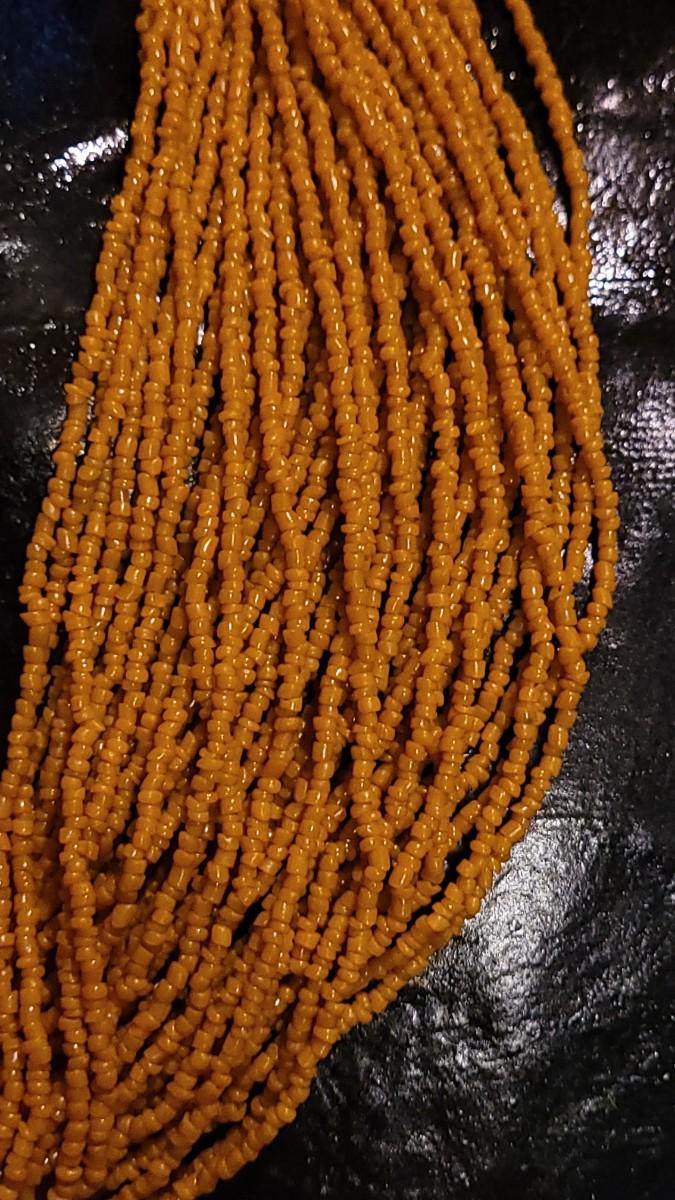 23" butterscotch color seed bead multi-strand necklace with a real coin clasp