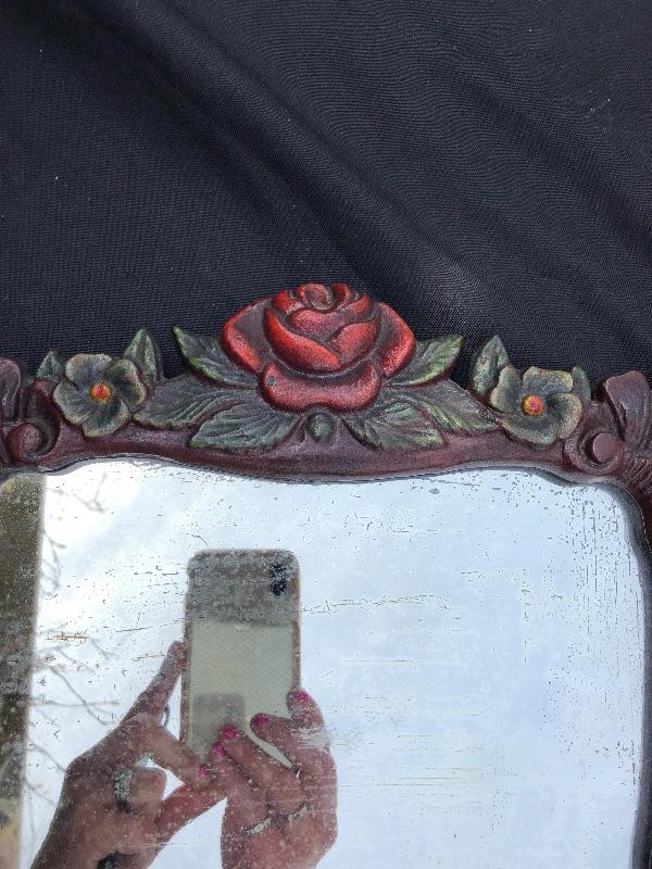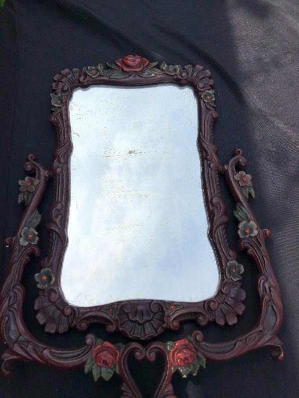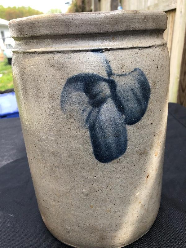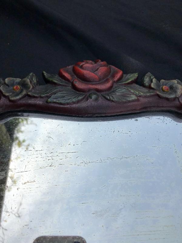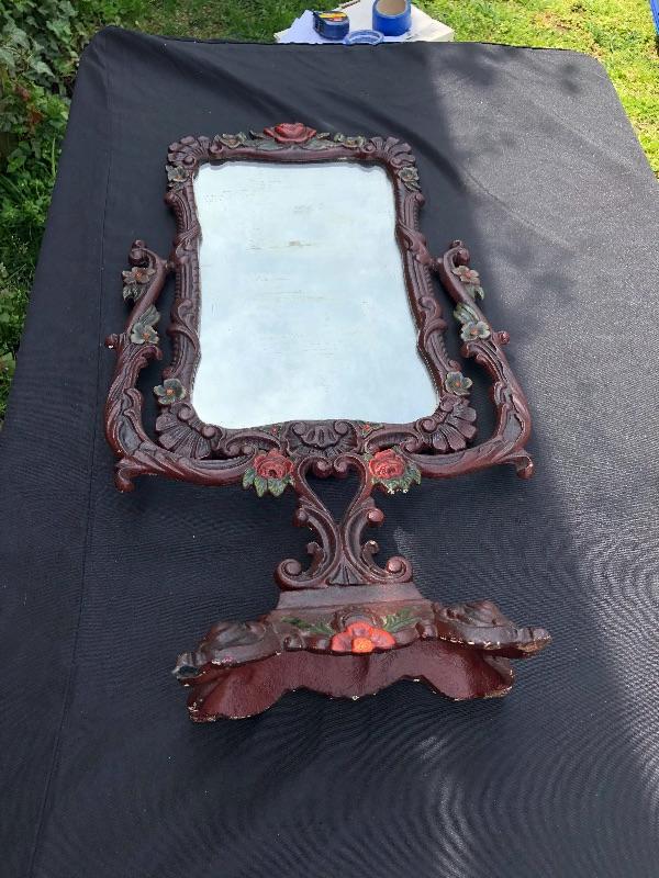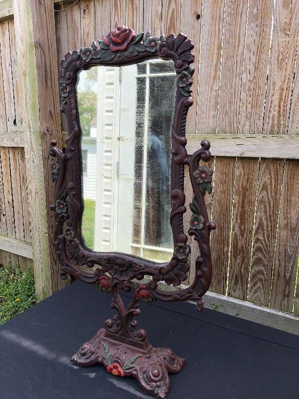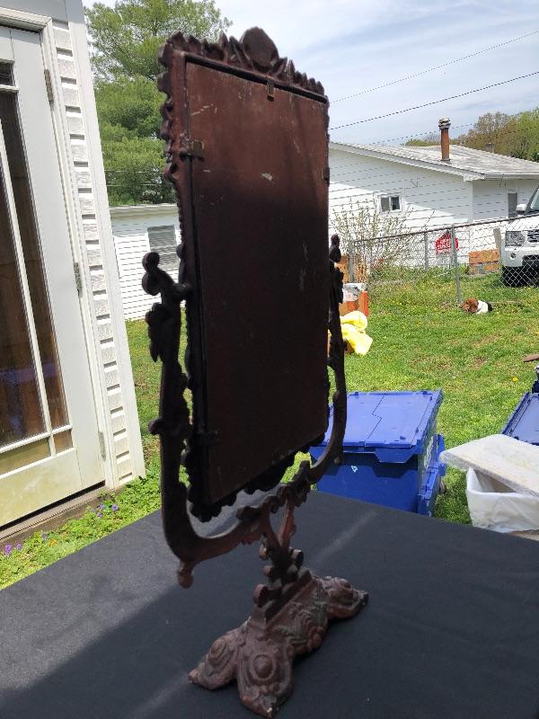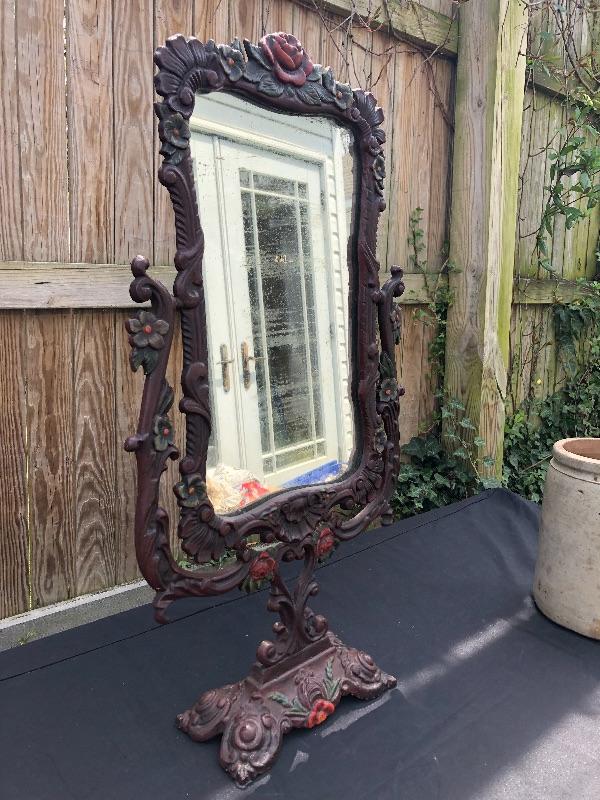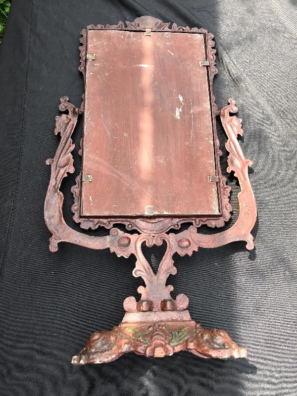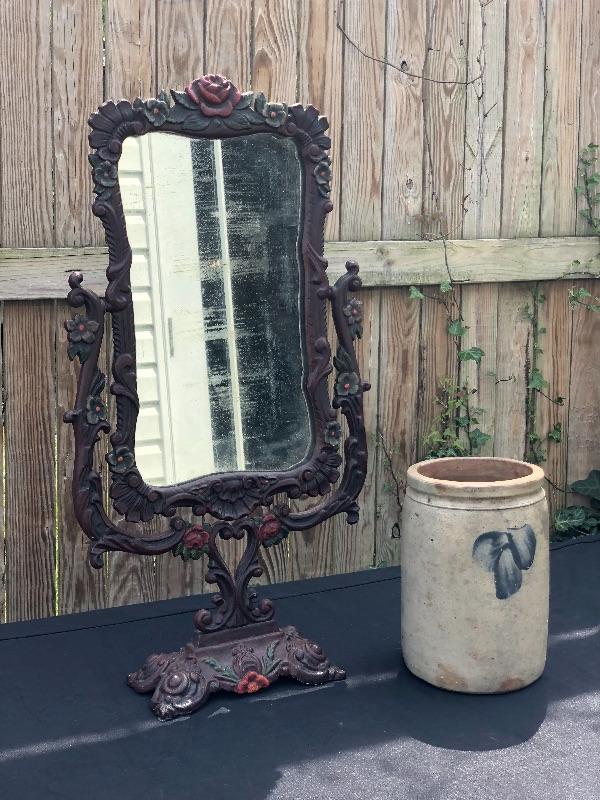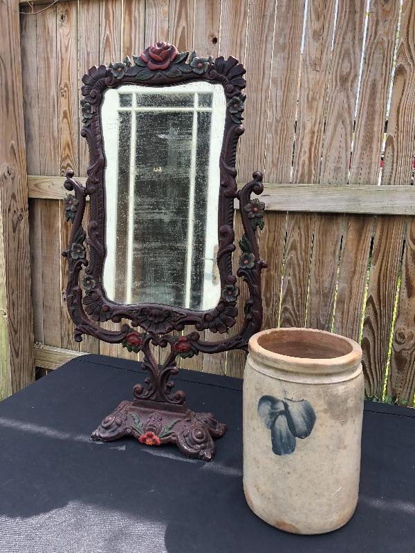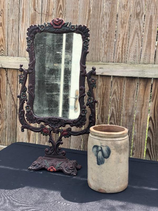 LOT 25 - Antique Cast Iron Mirror & Antique Crock Pottery