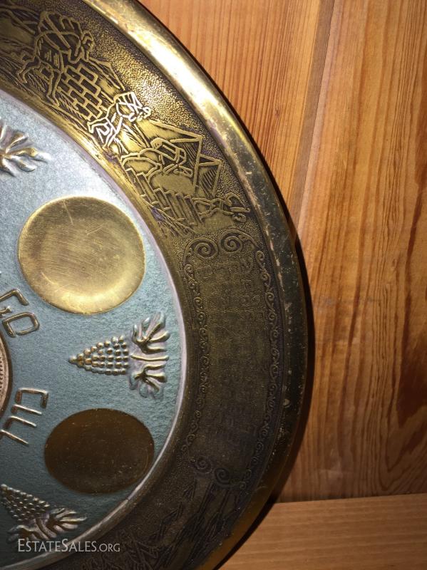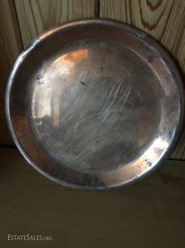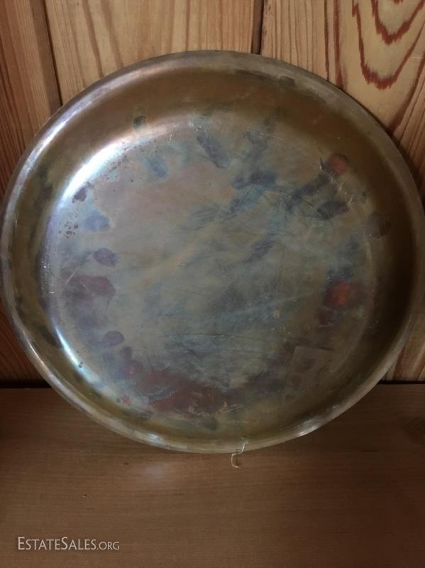 Various pieces of brass and copper. 6 pieces. Includes plates bowls and other miscellaneous. See photos for details. Sold as is.
