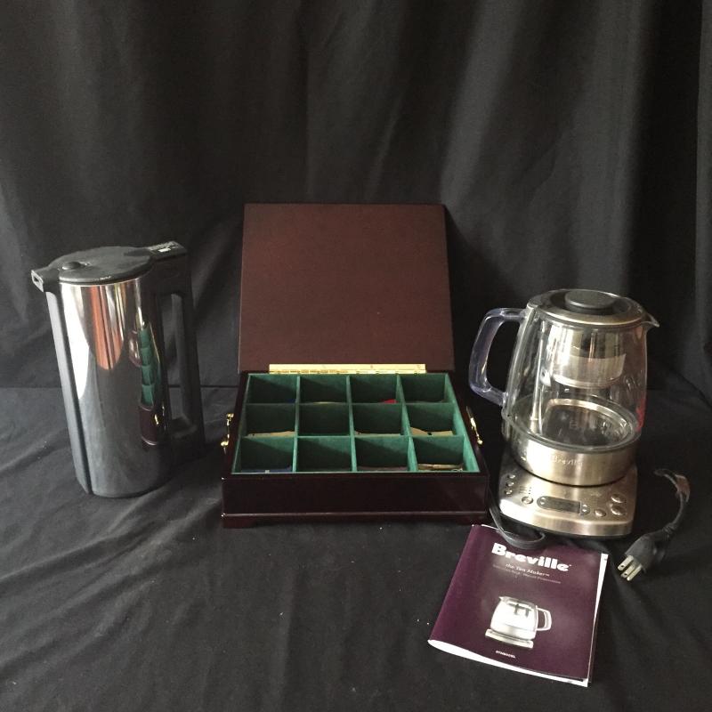 Do you love tea? This lot has an awesome Breville tea maker # BTM800XL, a modern thermos and a handy Bombay tea storage box. Get ready for tea time.