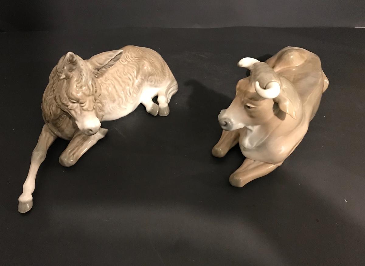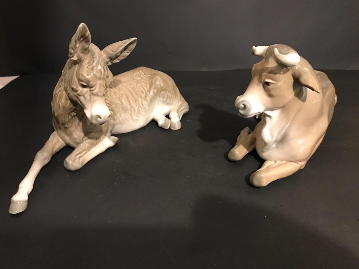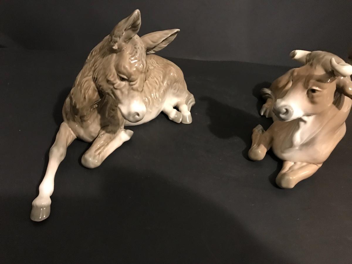 Lladro Large Nativity Set - Manger Animals - Ox #1425 And Donkey #1424. All Lladros are in excellent vintage condition without original boxes, except where noted. All items have been inspected and any damages or imperfections have been photographed and noted to the best of our knowledge and ability. It is the responsibility of the buyer to inspect all pictures, as they are the best representation of the items. The pictures show condition, measurements if taken, and what is included in the lot. Upon pickup, it is the responsibility of the buyer to inspect their items prior to leaving the premises. Once the items leave the premises, there will be no refunds or returns. Buyers are also responsible for bringing their own boxes and packing materials for their items. Thank you.