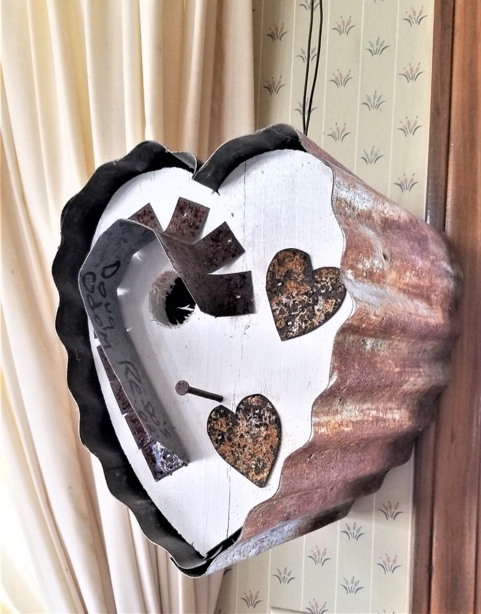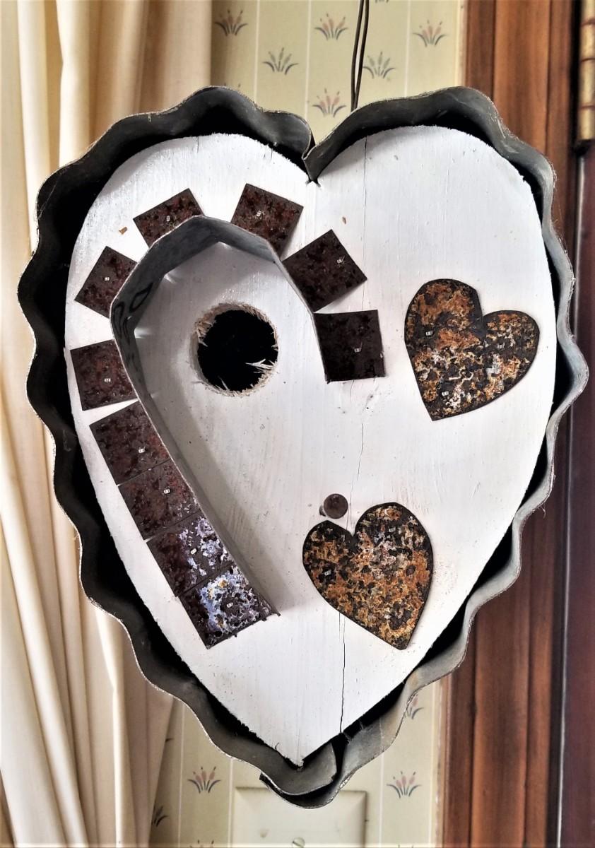 Mixed media rustic birdhouse - Farmhouse style - Marked Dothan, Alabama on reverse. Measures 8" x 7", 8" deep.