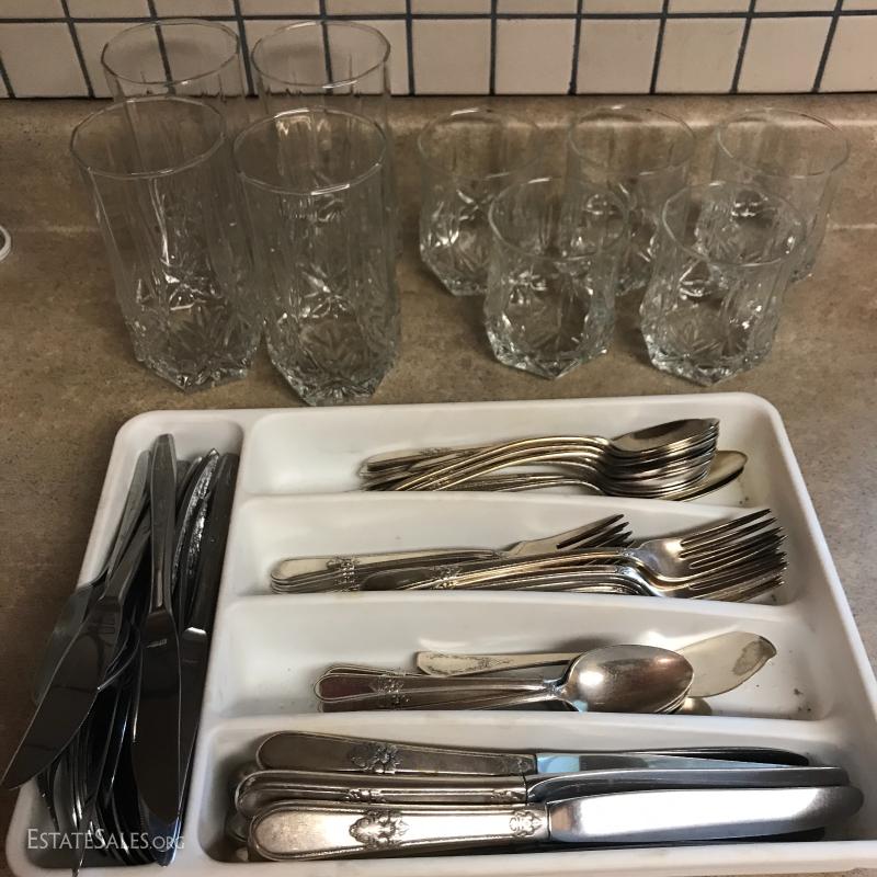 Get your college student set up with a set of glassware and silverware without breaking the bank. Great Wood Rogers design for silverware set. Also includes a set of stainless steel silverware in different pattern (not a full set). Shipping available or local pick up in Asheville, NC.