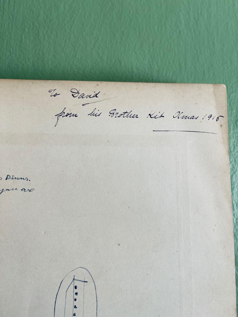 LOT 25 - Edmund Dulac's Fairy Book. This hardback book is beautifully illustrated with 13 bookplates. It is personally inscribed to David from his brother in 1915. This book has a worn spine and cover edges. There is some writing and a drawing on the inscription page. Overall pages are very clean and crips.