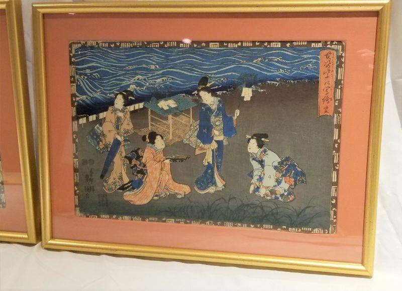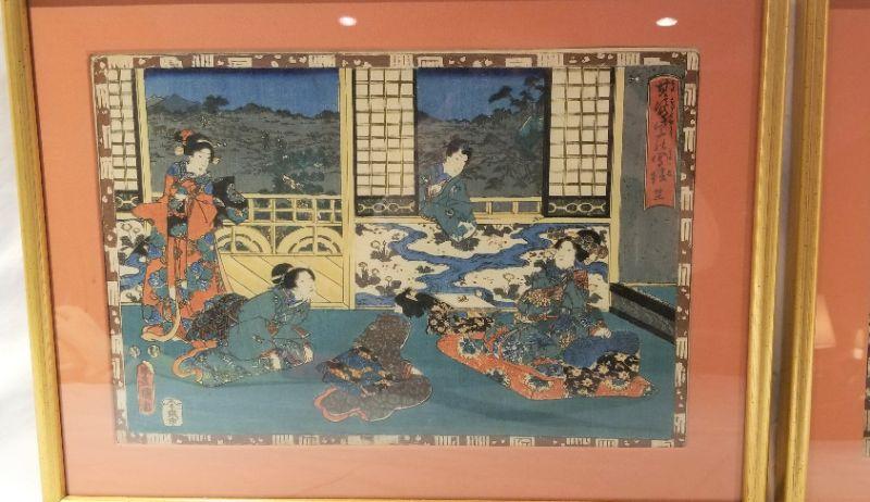 Lot #25  Fantastic Pair of Framed Antique Chinese Woodblocks - Toyokumi 1786-1864